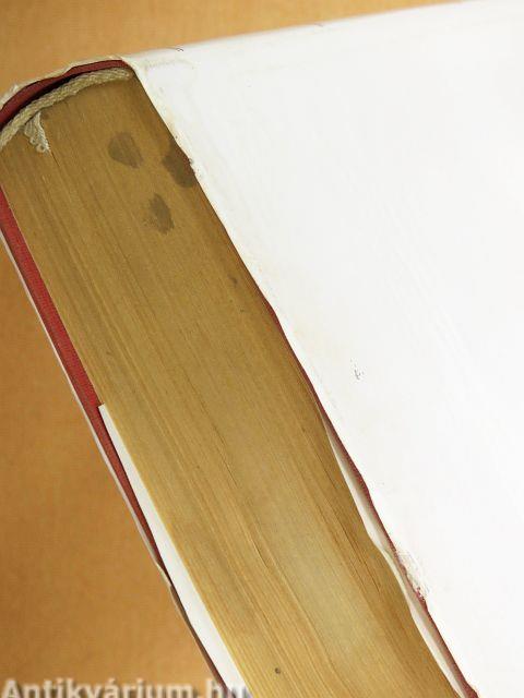 A lapélek és néhány lap foltos. A borító kopott, foltos.