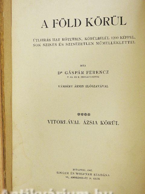Megjegyzés: 176 fekete-fehér képpel, 30 kihajtható melléklettel, 1 térképpel illusztrálva. A "Negyvenezer mértföld vitorlával és gőzzel" teljesen átdolgozott új kiadása. Hornyánszky Viktor cs. és kir. udvari könyvnyomdája nyomatta, Budapesten. Írta: Dr. Gáspár Ferencz v. cs. és k. fregatt-orvos.