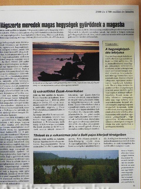 - 12 áttekinthető cikk a földtörténet nagyobb időegységeiről;