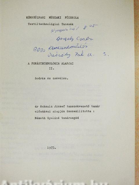 Kiadó: Könnyüipari Müszaki Főiskola Textiltechnológiai Tanszék