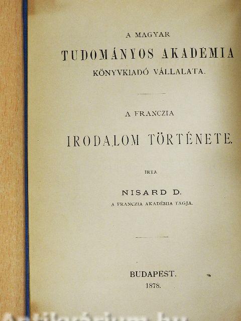 Nisard D. műveinek az Antikvarium.hu-n kapható vagy előjegyezhető listáját itt tekintheti meg: Nisard D. könyvek, művek
