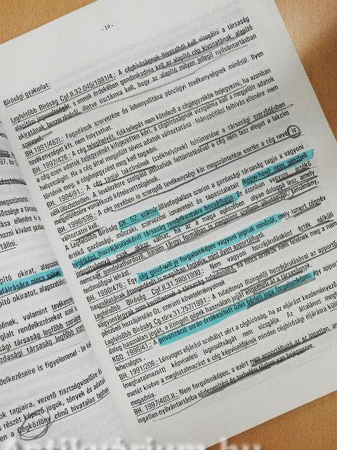 A lapélek és néhány lap nedvességtől foltos, több lapon aláhúzás és színes sorkiemelés látható.