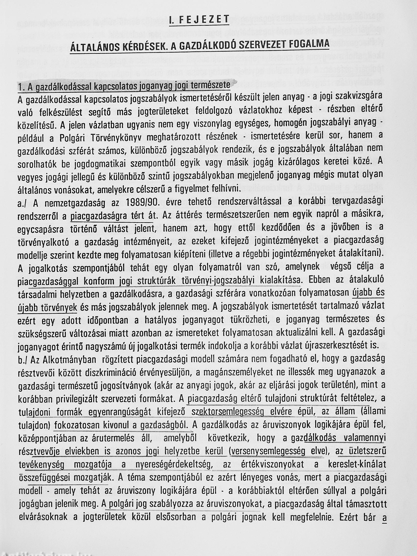 A gazdálkodással kapcsolatos jogszabályok és alkalmazási gyakorlatuk I.
