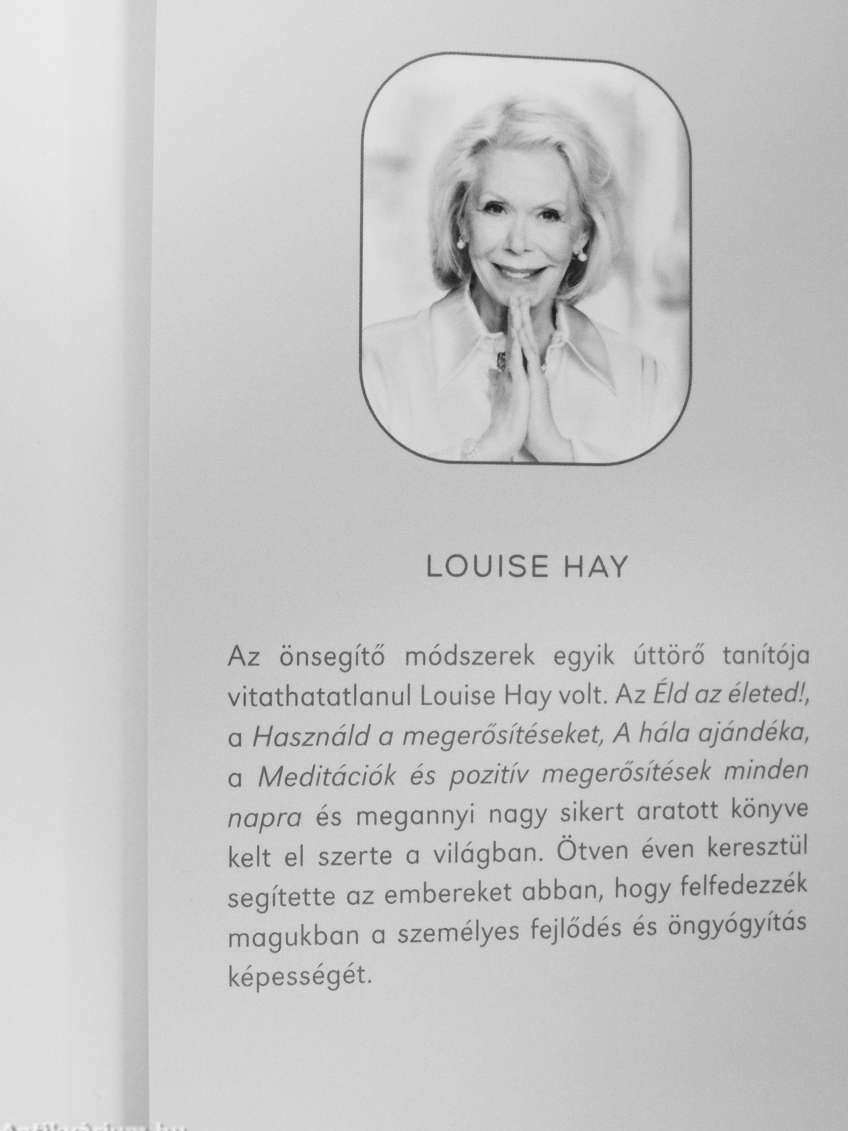 Az önsegítő módszerek egyik úttörő tanítója vitathatatlanul Louise Hay volt. Az Éld az életed!, o Használd a megerősítéseket, A hála ajándéka, 0 Meditációk és pozitív megerősítések minden napra és megannyi nagy sikert aratott könyve kelt el szerte a világban. Ötven éven keresztül segítette az embereket abban, hogy felfedezzék magukban a személyes fejlődés és öngyógyítás képességét.