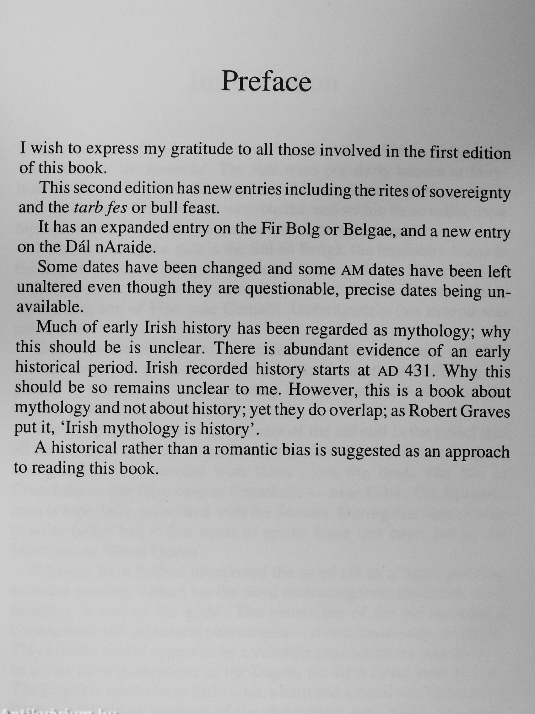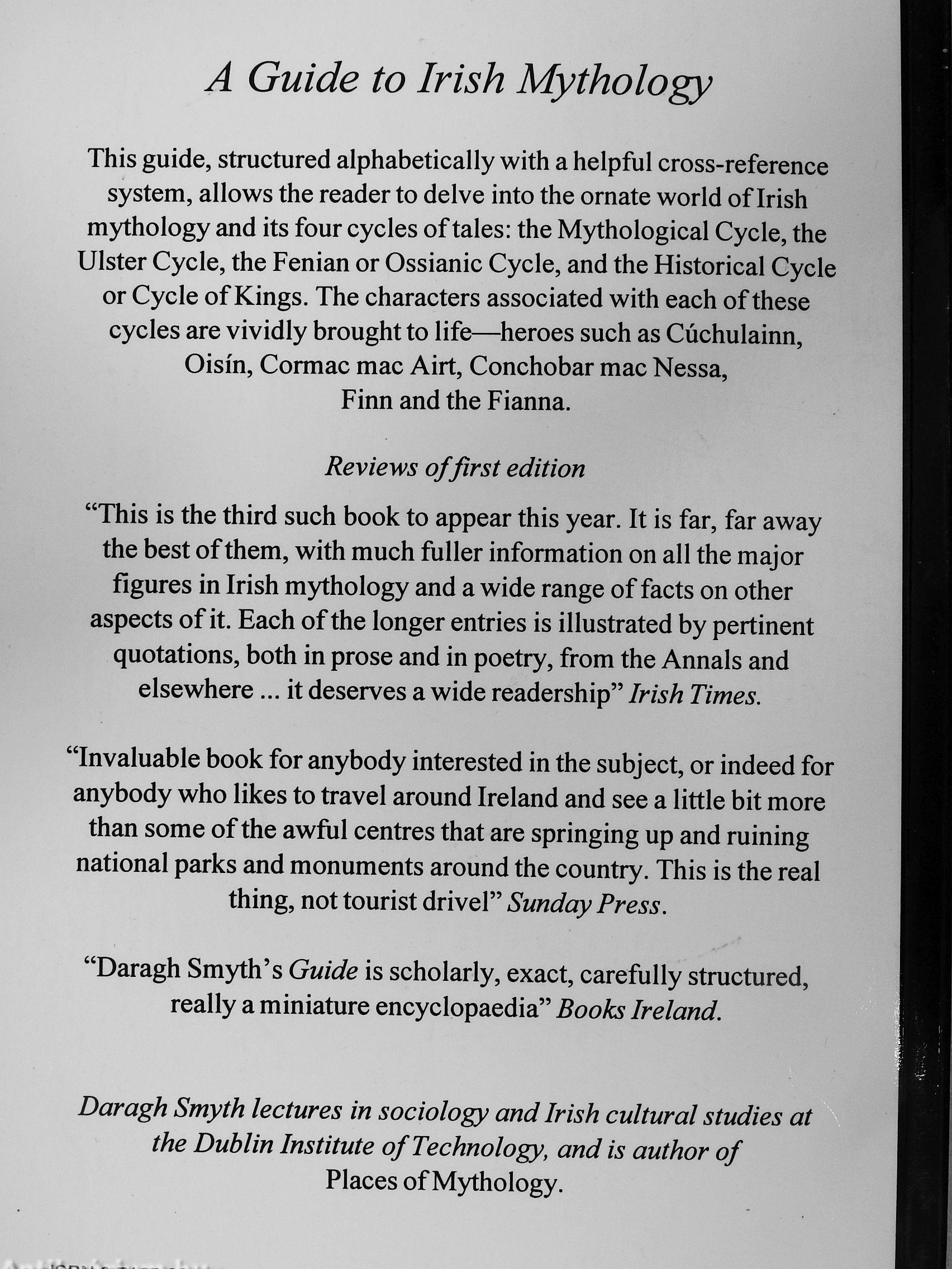 "This is the third such book to appear this year. It is far, far away the best of them, with much fuller information on all the major figures in Irish mythology and a wide range of facts on other aspects of it. Each of the longer entries is illustrated by pertinent quotations, both in prose and in poetry, from the Annals and elsewhere it deserves a wide readership" Irish Times.