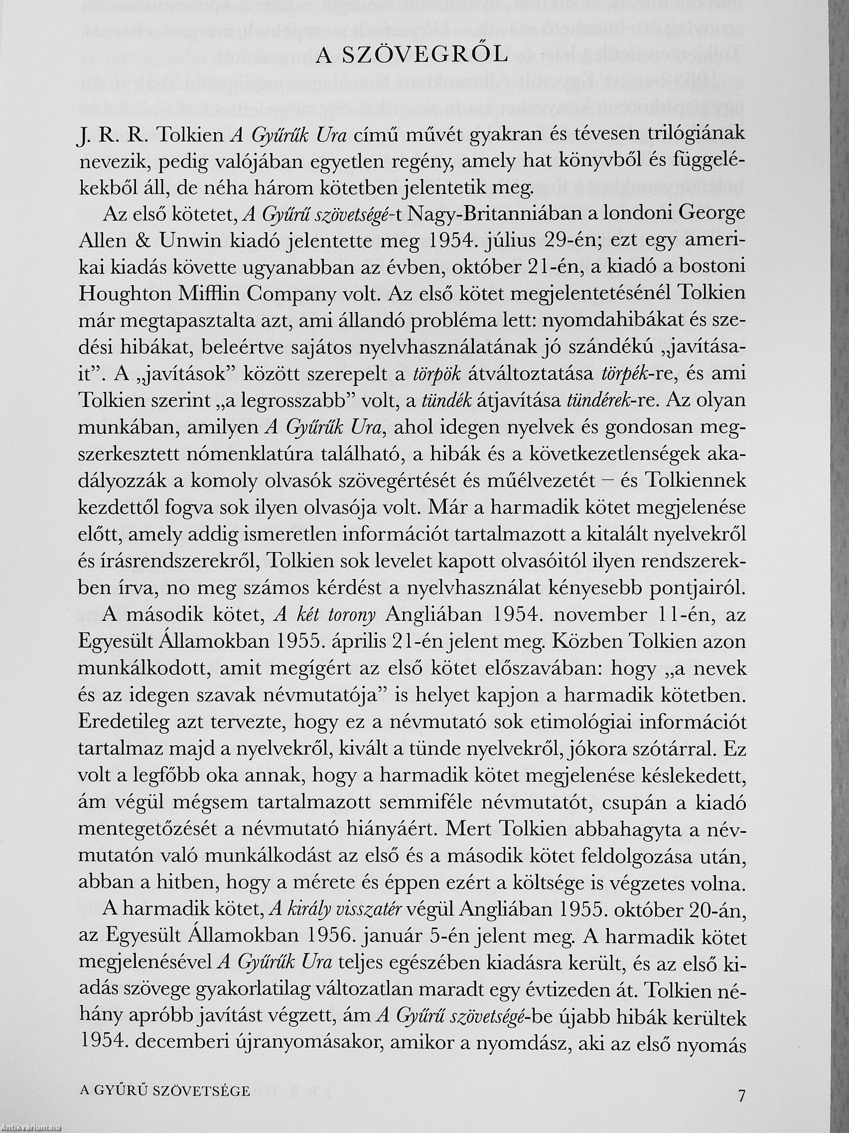 J. R. R. Tolkien műveinek az Antikvarium.hu-n kapható vagy előjegyezhető listáját itt tekintheti meg: J. R. R. Tolkien könyvek, művek