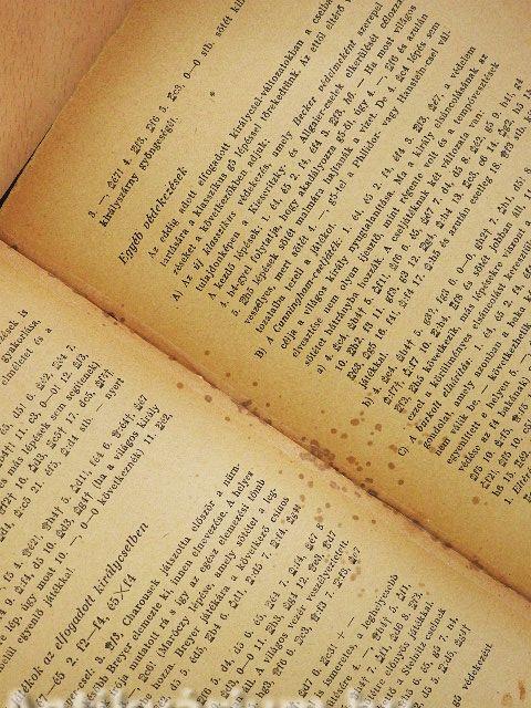 A kötés megtört, néhány lap foltos. A címlapon tulajdonosi bejegyzés található.