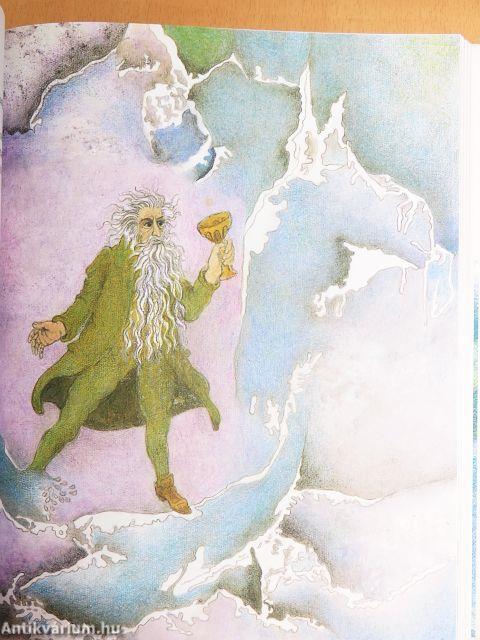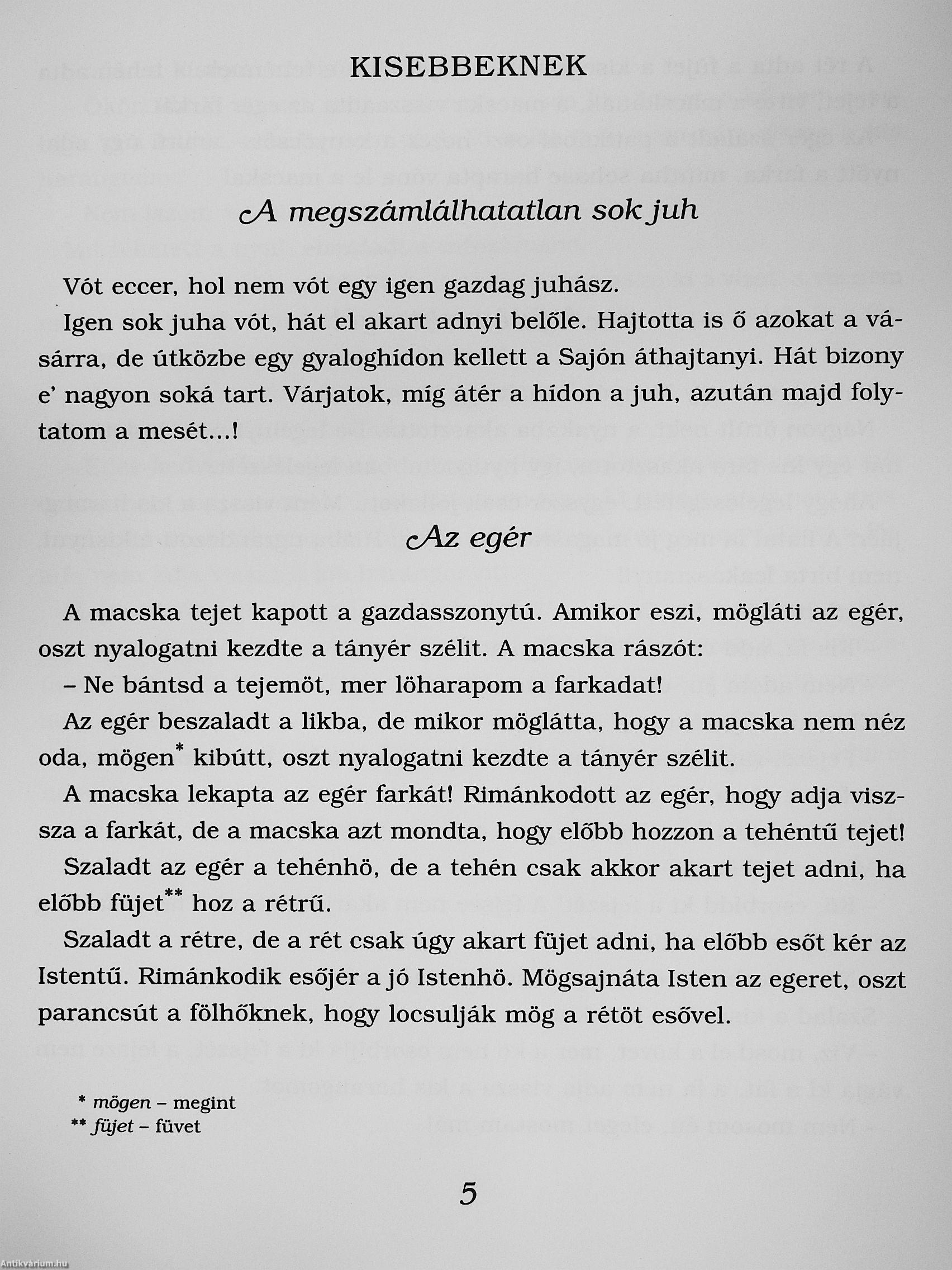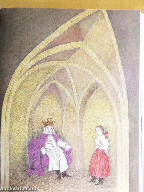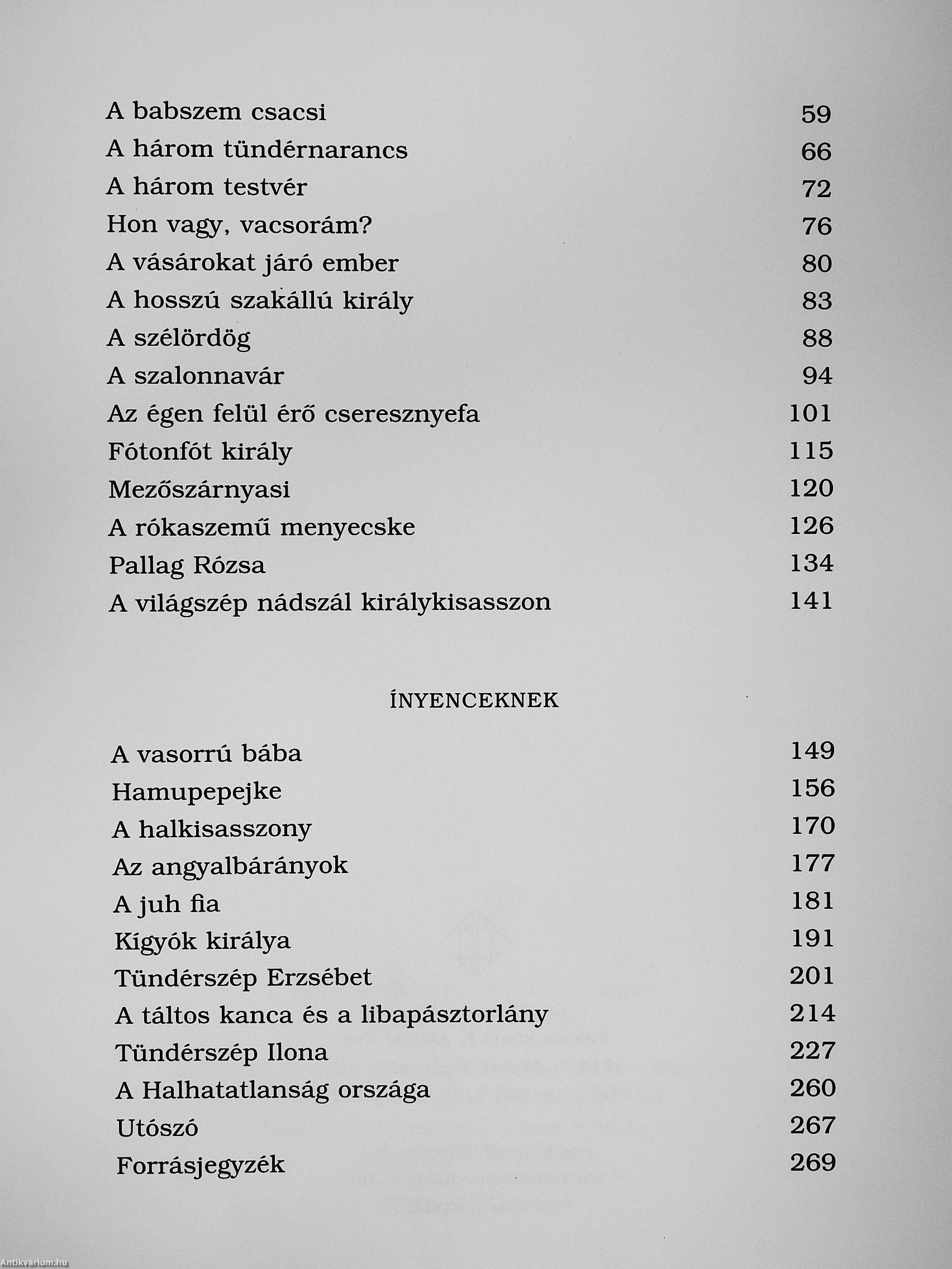 -Jaj, drága anyám, mit csinálsz ott? - Nagy szöröncséd van, hogy anyádnak szólítottál, mert most rögtön mögöttelek vóna! - mondja az ördöganya. Erre leszállt a hegyről, s mögkér-dözte a királyfit, hogy mi járatban vemi? A királyfi elmondta, hogy ő a három tündérnarancsot keresi, s elhatározta, hogy addig haza nem mönyön, amíg mög nem kapja. Az ördöganya azt mondta, hogy ő ugyan nem tudja, hogy hol lehet mögkapní, de van neki húsz fia, este, mikor hazajönnek, mögkérdl, hátha tud valamelyik róla. A királyfiút egy vesszővel mögsu-hintotta, aki abban a helybe söprűvé változott. Hazavitte és beállította az ajtó sorkába. Este, mikor hazajött a húsz ördög, mondogatták: - Milyen embörszag van itt! - Piszkáljátok ki a fogaitokot, mert azért éröztök embörszagot! -mondta az ördöganya. Az ördögök elővettek egyik egy szekérrudat, a másik egy szekérkötő rudat, és elkezdték piszkálni a fogaikat. - Szeretnétök-é, ha vóna nektök es egy em-börtestvérkétök? - kérdi az ördöganya. - Szeretnénk, hogyne szeretnénk -mondják az ördögök. Elévötte az ajtó sorkából a söprűt, a pácával mögsuhintotta, s újból királyfi lött belőle. Az ördögök erősen mögörvendtek a királyfinak, táncolni kezdtek örömlkbe. Eleget érdeklődött a királyfi a három tündérnarancsról, de egy se hallott róla. - Nem baj - mond-. Ja az ördöganya -, mert van neköm egy öreg anyám, meg-kérdözzük őt, hátha tud róla