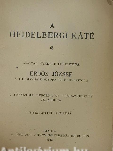 | Megjegyzés: | Tizenkettedik kiadás. Fordította Erdős József, a theologia doktora és professzora. Nyomtatta Debrecen sz. kir. város és a Tiszántúl református egyházkerület könyvnyomda-vállalata. |
