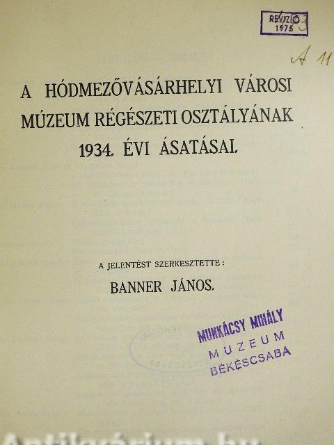 A hódmezővásárhelyi városi múzeum régészeti osztályának 1934. évi ásatásai