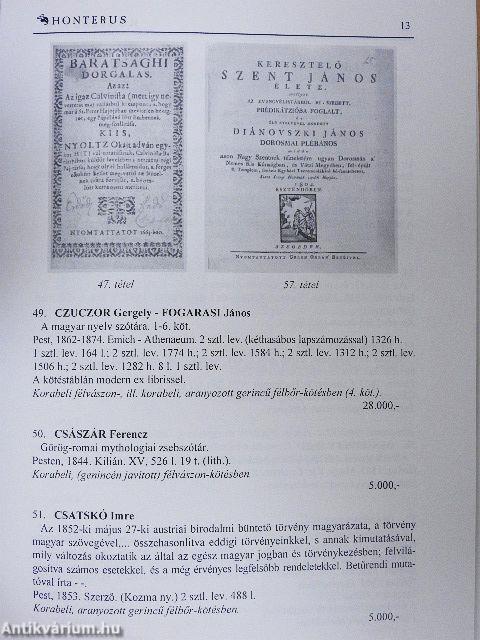 | Sorozatcím: | A Honterus Antikvárium árverése |