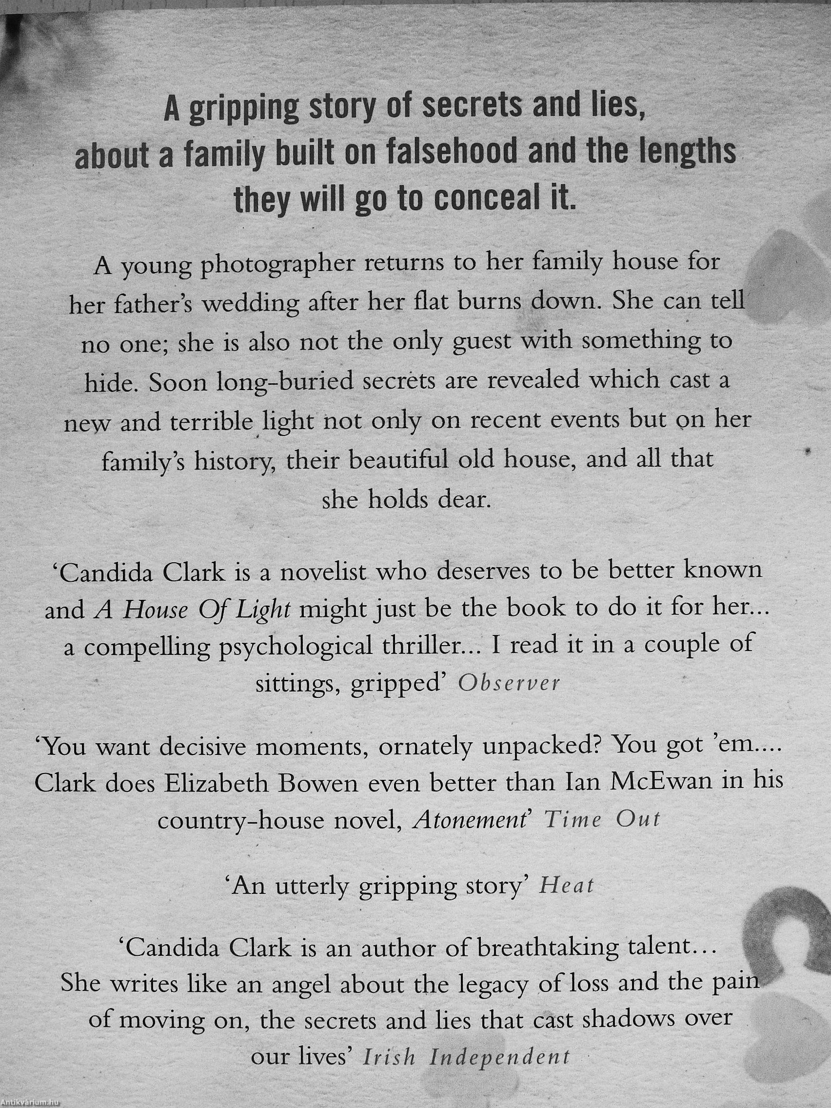 'Candida Clark is a novelist who deserves to be better known and A House Of Light might just be the book to do it for her a compelling psychological thriller I read it in a couple of sittings, gripped' Observer