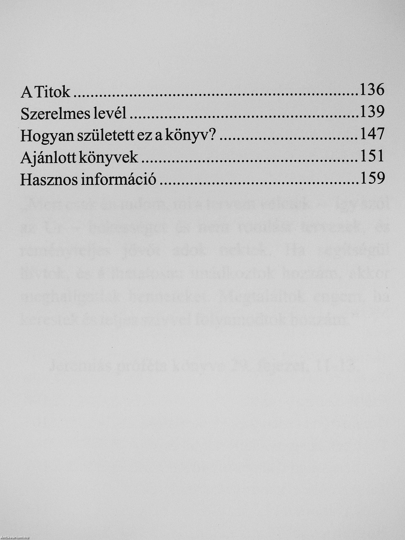 Ez a könyv azoknak (is) készült, akik nem igazán szeretnek olvasni. Mivel rövid és lényegre törő, 2-3 óra alatt elolvasható. Azoknak a lelkipásztoroknak és ifjúsági vezetőknek is ajánljuk ezt az írást, akik a rájuk bízott fiataloknak szeretnének segíteni a társkeresés... Tovább