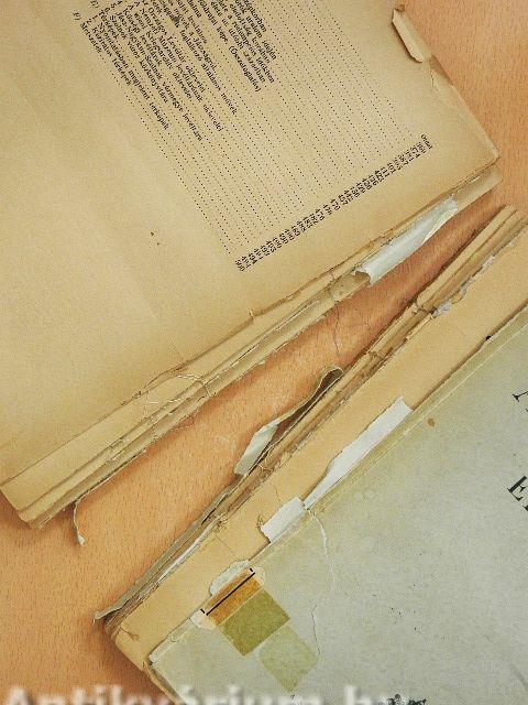 Könyvtári könyv volt. A gerinc és a hátsó kötéstábla hiányzik. Az első kötéstábla levált. A könyvtest két részre szétvált. Több ív részben elvált a kötéstől. A képtáblák és a mellékletek hiányoznak a könyvből. A lapok sérülékenyek. A címlapon tulajdonosi címke látható.