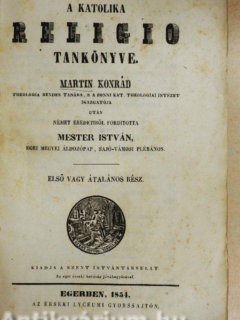 | Megjegyzés: | Martin Konrád theologia rendes tanára, s a bonni Kat. Theologiai Intézet igazgatója után német eredetiből forditotta Mester István, egri megyei áldozópap, sajó-vámosi plébános. Nyomatott az érseki lyceumi gyorssajtón, Egerben. |