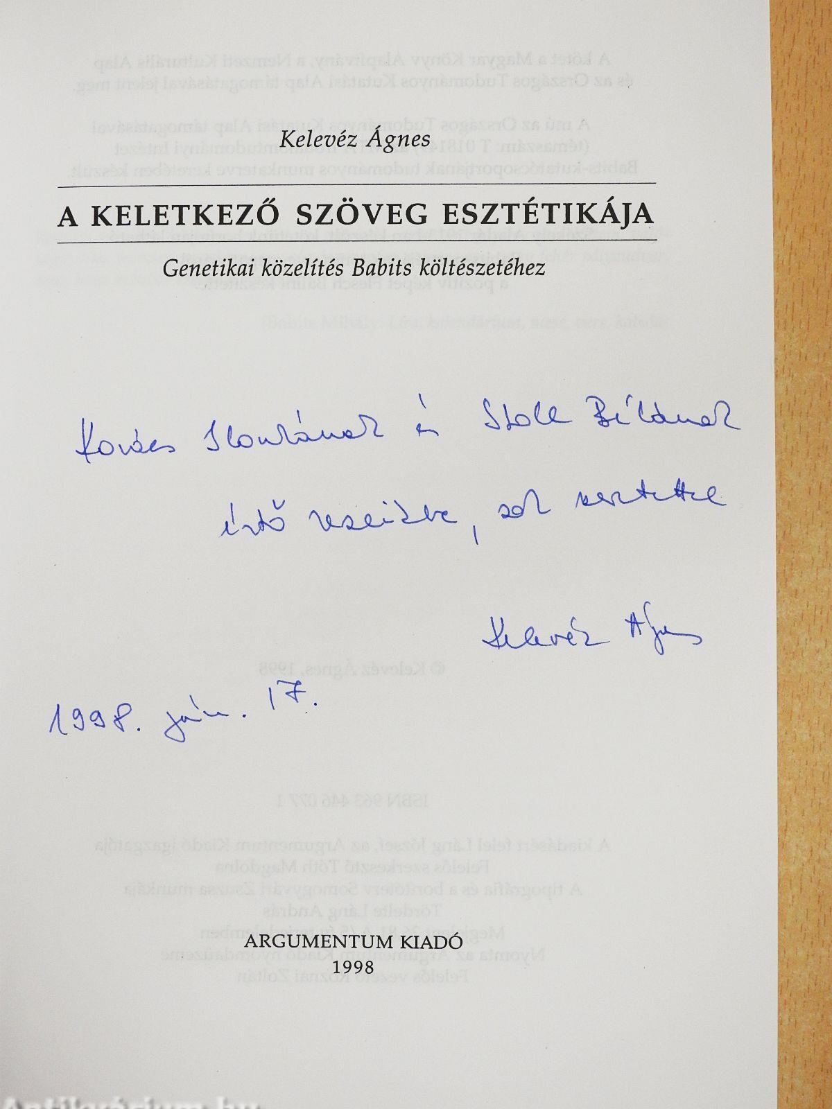 A keletkező szöveg esztétikája (dedikált példány) A keletkező szöveg esztétikája (dedikált példány) A keletkező szöveg esztétikája (dedikált példány) A keletkező szöveg esztétikája (dedikált példány)