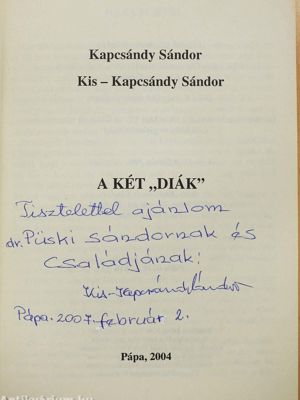 | Megjegyzés: | Kis-Kapcsándy Sándor, az egyik szerző által dedikált példány. |