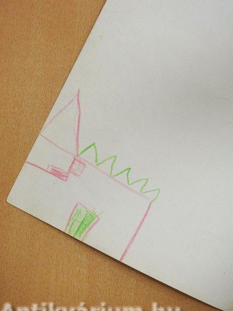 A borító kopott, belső felén gyermekrajz látható.