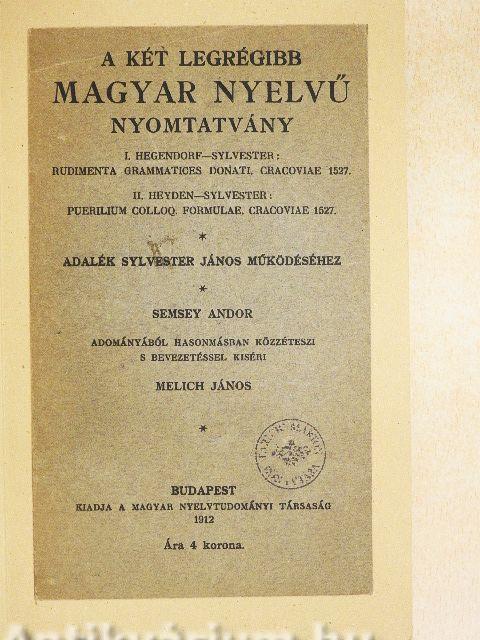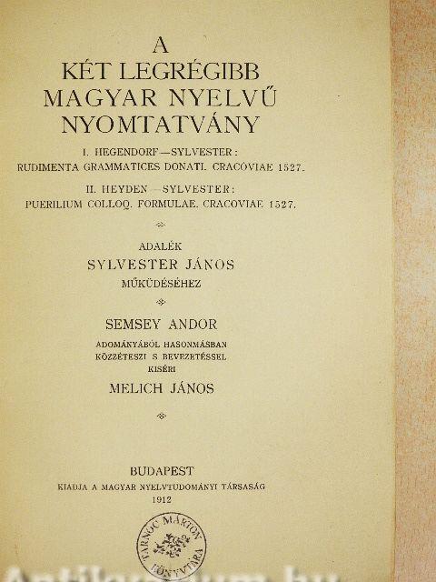 | Megjegyzés: | Két mű egy könyvben. Semsey Andor adományából hasonmásban közzéteszi s bevezetéssel kiséri Melich János. A német szöveg gótbetűs. Hornyánszky Viktor nyomása, Budapest. |