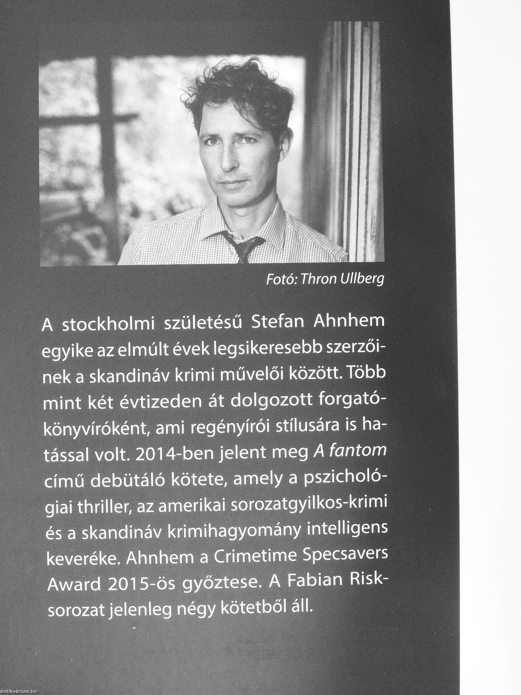 A stockholmi születésű Stefan Ahnhem egyike az elmúlt évek legsikeresebb szerzőinek a skandináv krimi művelői között. Több mint két évtizeden át dolgozott forgatókönyvíróként, ami regényírói stílusára is hatással volt. 2014-ben jelent meg A fantom című debütáló kötete, amely a pszichológiai thriller, az amerikai sorozatgyilkos-krimi és a skandináv krimihagyomány intelligens keveréke. Ahnhem a Crimetime Specsavers Award 2015-ös győztese. A Fabian Risk-sorozat jelenleg néqy kötetből áll.
