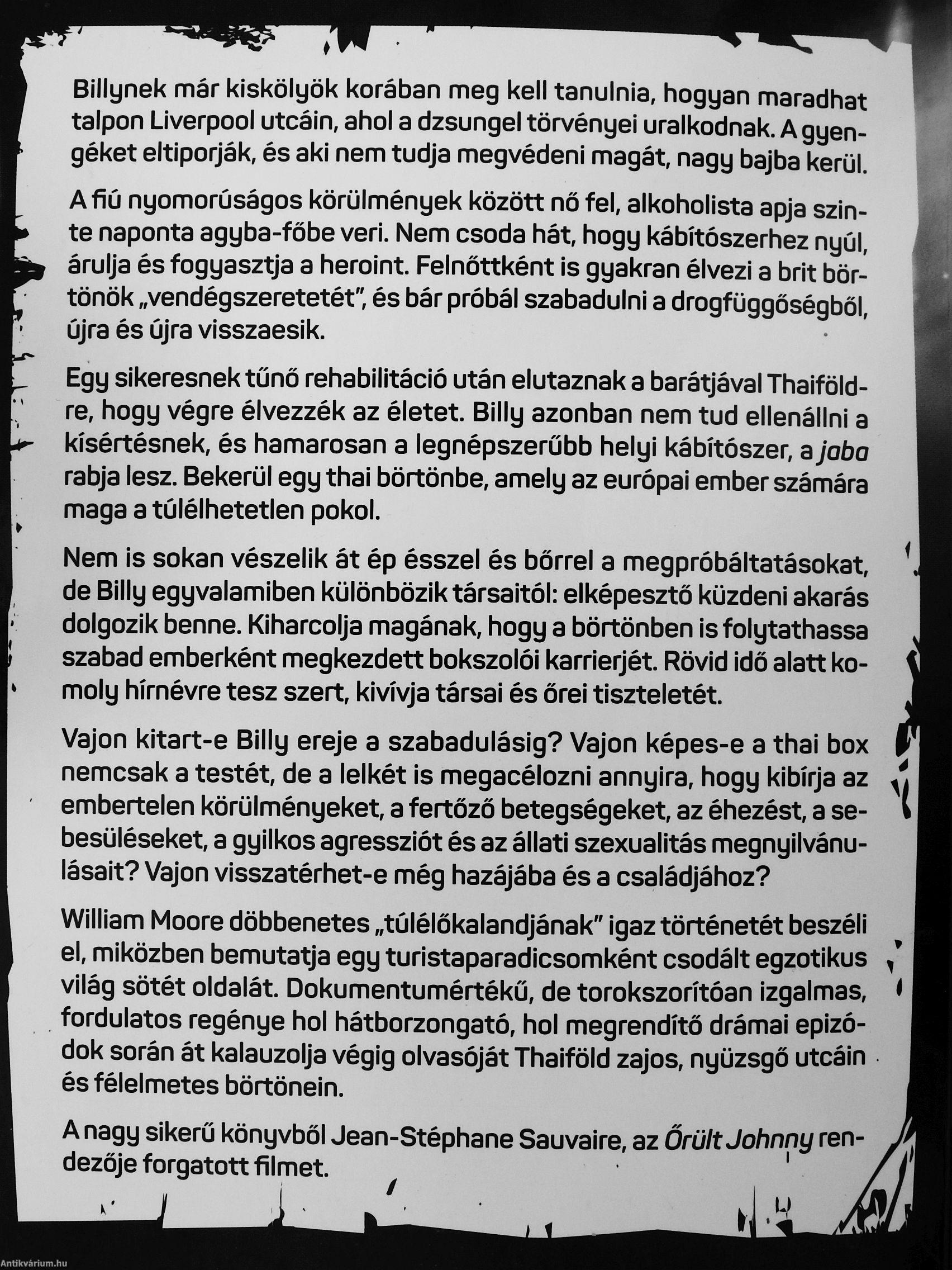 William Moore döbbenetes „túlélőkalandjának" igaz történetét beszéli el, miközben bemutatja egy turistaparadicsomként csodált egzotikus / világ sötét oldalát. Dokumentumértékű, de torokszorítóan izgalmas, < fordulatos regénye hol hátborzongató, hol megrendítő drámai epizódok során át kalauzolja végig olvasóját Thaiföld zajos, nyüzsgő utcáin és félelmetes börtönein.