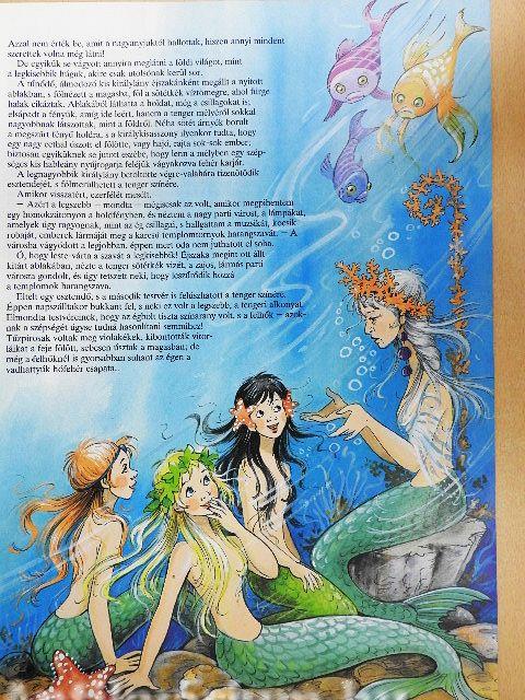 Messze kinn a tengeren kékséges kék a víz, akár a búzavirág szirma, s átlátszó, mint a legtisztább üveg. És mély, nagyon mély, a leghosszabb horgonykötél se ér le a fenekére; sok-sok templomtornyot kellene egymásra állítani, hogy a tengerfenékről a víz színéig érjenek. Odalenn a mélységes mélyben lakik a tenger népe.