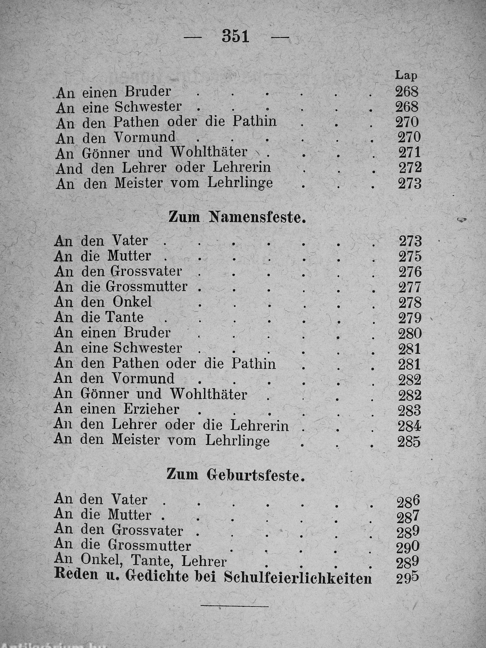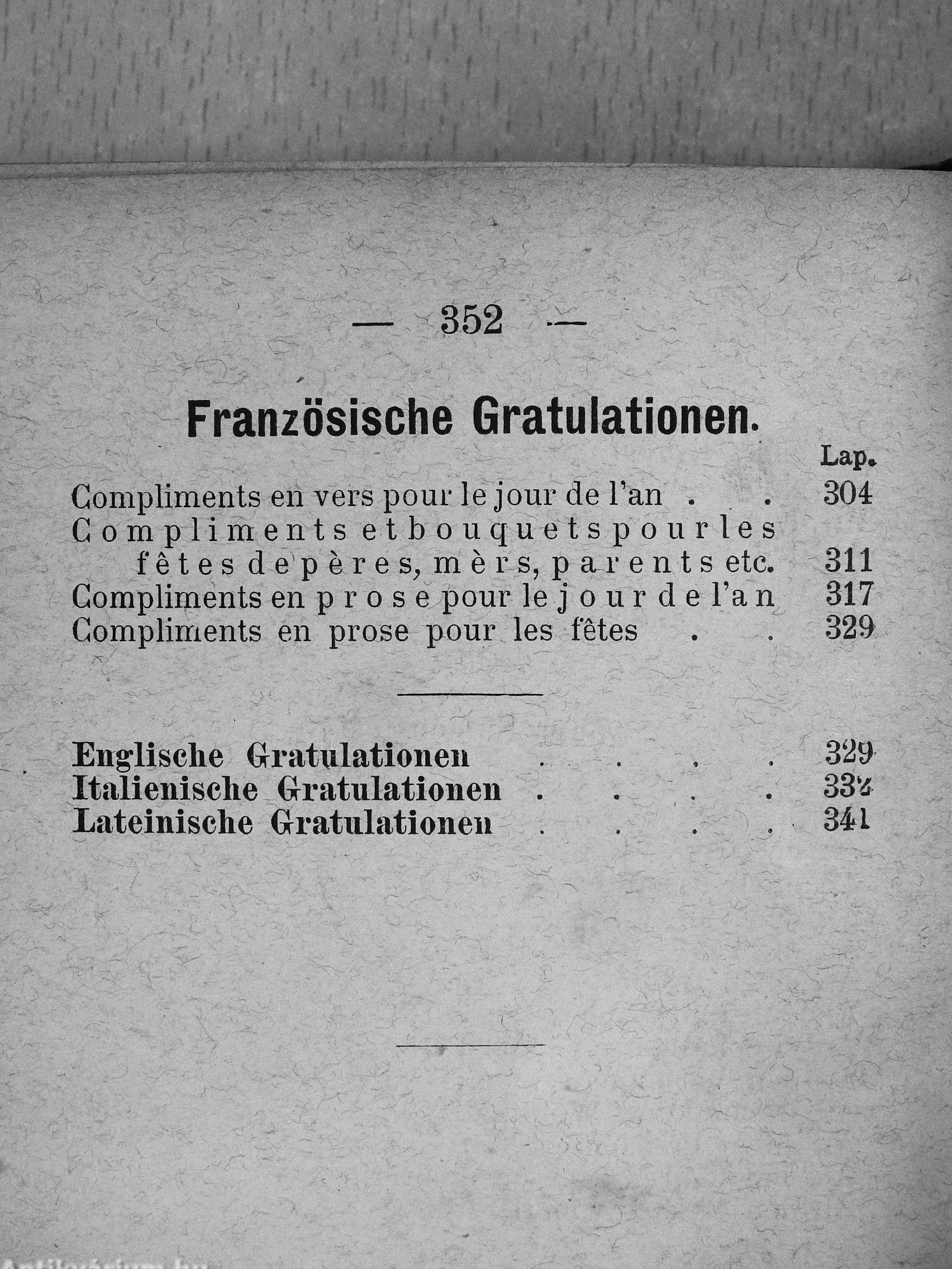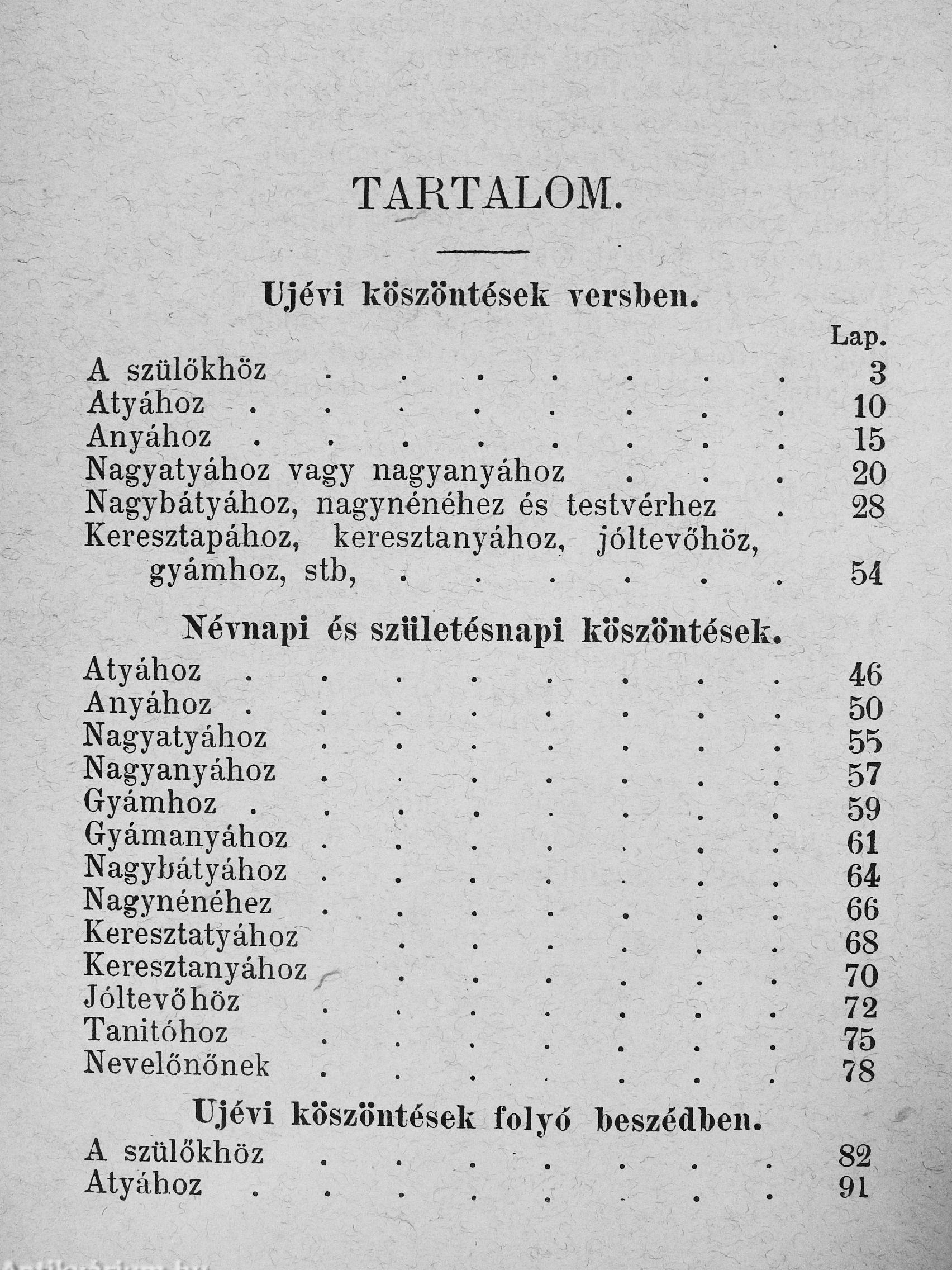| Megjegyzés: | Függelékül köszöntések német, francia, angol, olasz és latin nyelven (a német rész gótbetűs). Összeállította Bácsi József. Nyomatott Wodianer F. és Fiainál, Budapesten. |