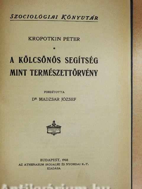 Két jelenet hatott rám különösen az állatok életéből utazásaim közben, amelyeket fiatal éveimben tettem nyugati Szibérián és az északi Mandzsúrián át. Az egyik a létért való nagyon kemény harc, amelyet a legtöbb állatfaj a zordon természettel folytat; az élő lényeknek óriási méretekben történő pusztulása, amelyet időszakonkint természetes okok idéznek elő és ami ebből következik, az élő lényeknek csekély száma azon a nagy területen, amelyen megfigyeléseimet végeztem. Másodszor pedig sehol sem tudtam felfedezni azt az elkeseredett küzdelmet a létfeltételekért ugyanazon fajhoz tartozó állatok között, még azokon a ritka helyeken sem, ahol az állatvilág nagy számban élt, holott erre a körülményre nagyon gondosan figyeltem. Pedig ez az a küzdelem, amelyet a legtöbb darwiniánus - maga Darwin azonban egyáltalában nem mindig - a létért való küzdelem tipikus ismertető jelének és a fejlődés főtényezőjének tekint. Vissza