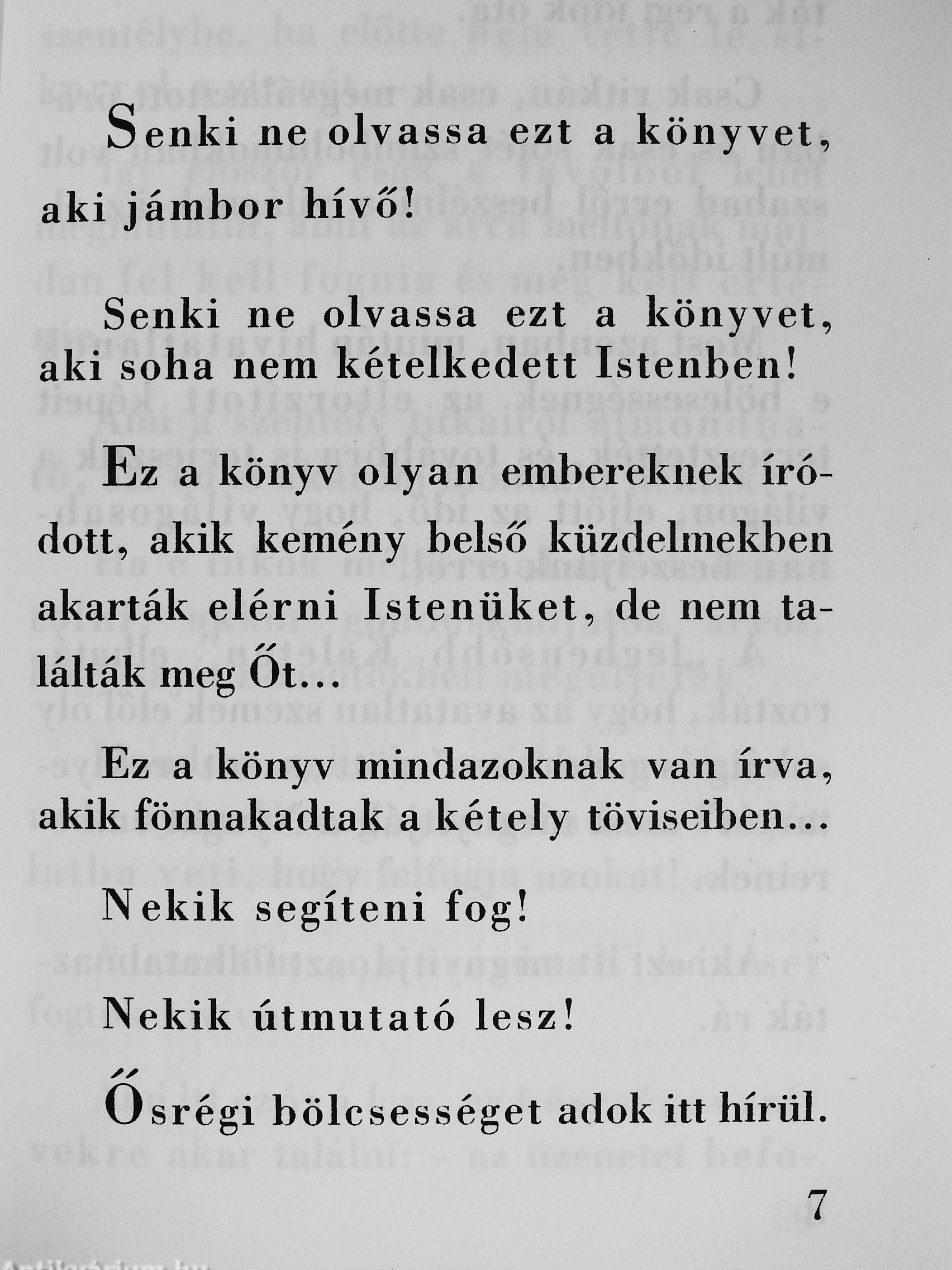A 21. században sem szűnt meg az emberekben az Isten utáni vágy. Az „élő Isten" azonban nem a piacokon riká-csolók, nem az értelmi erőfeszítések, nem a dogmatikák, nem a poUtikai ideológiák, vagy szekták, és nem is a romantikus álmodozók Istene. Csak a csendben és a gyakorlatba átültetett szeretetben található meg O minden egyes ember legbensőbb valójában. Azt, hogy a szerző honnan birtokolja az „élő Istenről" és a szellemi valóságról itt kinyilatkoztatott, őstapasztalatban gyökerező ismereteit, az olvasó akkor tudja meg, ha már alaposan, lelki beleérző képességével elmélyedt a műben. A felületes olvasás eredménytelen. Ez az alapvető, szellemi tanítói könyv, meglepő módon, a modern tudományok eredményeivel is összhangban van. Az úgynevezett kritikus olvasó is ráérezhet, hogy e könyv oldalain olyan valaki beszél, akinek hatalom adatott a Valódi Valóságban gyökerező igazság- és igazságoknak kifejezésére az emberi nyelvben.