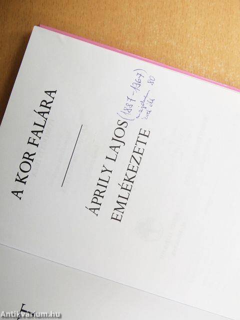 | Áprily Lajos: A kor falára (In: Áprily Lajos összegyűjtött versei és drámái. Bp., Magvető, 1985.) | 5 |