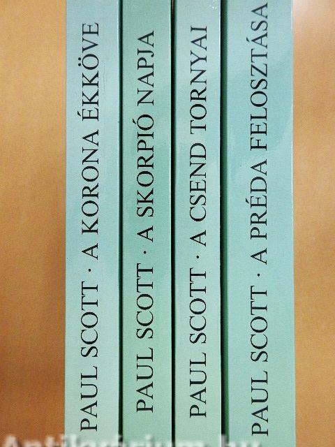 E két évszám kijelölte időkeretben játszódik Paul Scott regényfolyama, a belőle készült tévésorozat nyomán inkább A korona ékköve címen ismert Rádzs-négyes. Az író, aki a háború alatt maga is Indiában szolgált a hadseregben, hatalmas tablón jeleníti meg az indiai brit uralom végnapjait: a zavargásoktól, politikai, faji és vallási ellentétektől, erőszaktól és testvérgyilkos indulatoktól komor történelmi háttér előtt lenyűgöző emberi színjátékot rendez, amelyben hol fő-, hol mellékszereplőként tűnik fel számtalan emlékezetes figura - a fiatal angol nő, Daphne Manners, a Bibighar-kerti támadás szenvedő alanya; Daphne indiai szerelmese, a hazájában hontalan Hari Kumar, akit többedmagával a lány elleni nemi erőszakkal vádolnak, de politikai okra hivatkozva börtönöznek be, a valódi ok azonban egészen más; Ronald Merrick, a kerületi rendőrfőnök, majd katona, majd ismét rendőr, aki a legtöbbet tudja az ügyről, s végül borzalmas sorsra jut; Miss Crane és Miss Batchelor, a missziós tanítónők, akiknek India a végzetük; a két Layton lány, Susan és Sarah, meg a család többi tagja, akik egy jellegzetes életforma megtestesítői; az orosz emigráns Bronowsky gróf, akit különös életútja a mirati naváb udvartartásába vezet; Mohamed Ali Kasim, a britbarát muzulmán politikus, akit a britek csuknak börtönbe, és fiai, Sayed és Ahmed, áldozatok mindketten; és még sokan mások. S ahogy a négy önálló kötetben az olykor ismétlődő - de másként, mert mindig más szempontól előadott - epizódokból, a beszélgetésekből, emlékiratokból, levelekből és elmélkedésekből mind több szükségszerű vagy éppen véletlen összefüggésre derül fény, egyre részletesebbé és bonyolultabbá, ugyanakkor mindinkább áttekinthetővé válik az összkép, s megelevenednek a helyszínek és tájak is, India az olvasó számára valóságossá testesül, majd pedig jelképpé lényegül át: olyan teljességgé, amelyhez egy emberi közösség az adott időben - de máig ható módon - önmagát: eszméit, hitét és erkölcseit mérte.