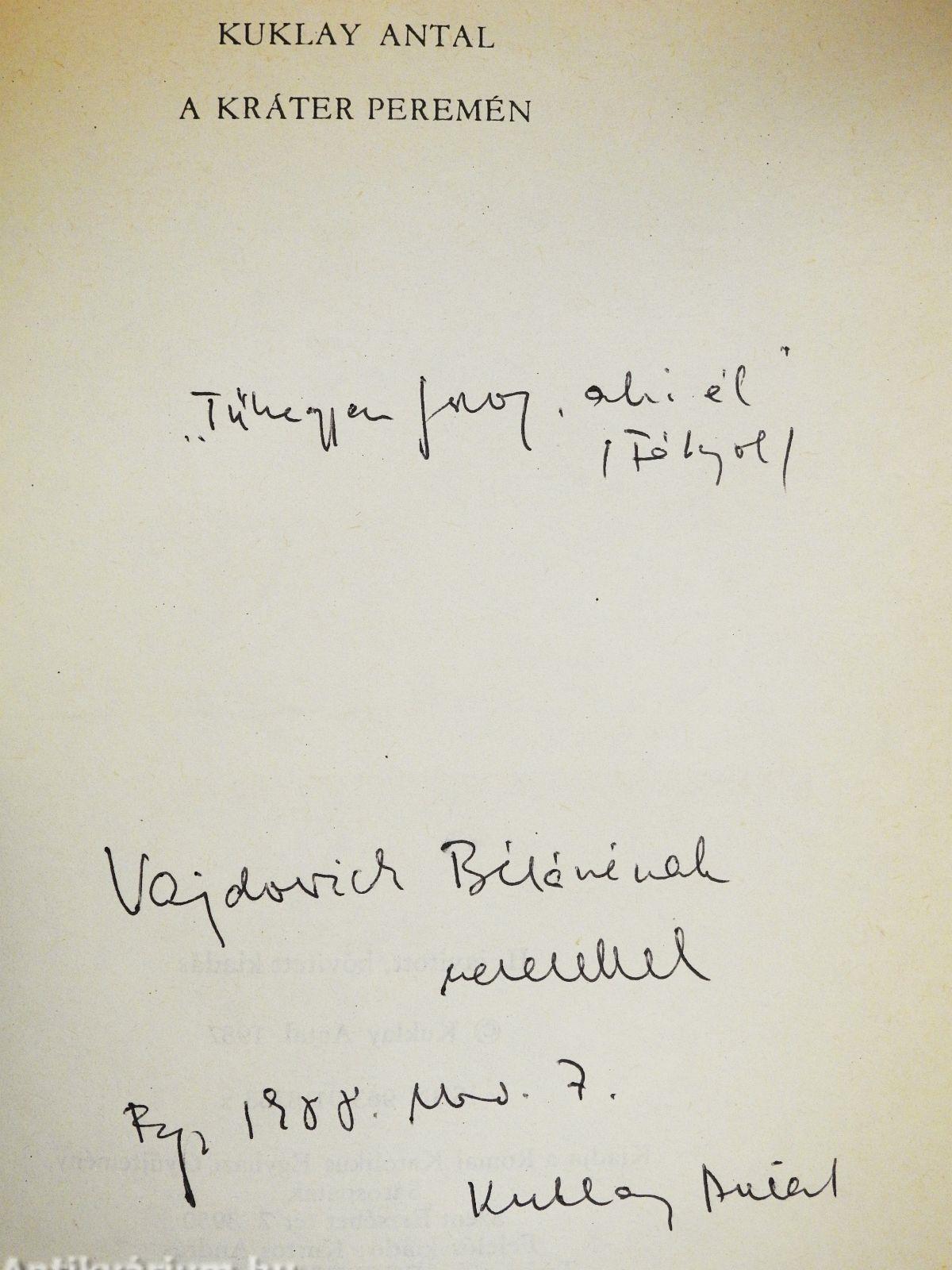 Az előlapon a szerző, Kuklay Antal névre szóló dedikációja látható. Jó állapotú példány.