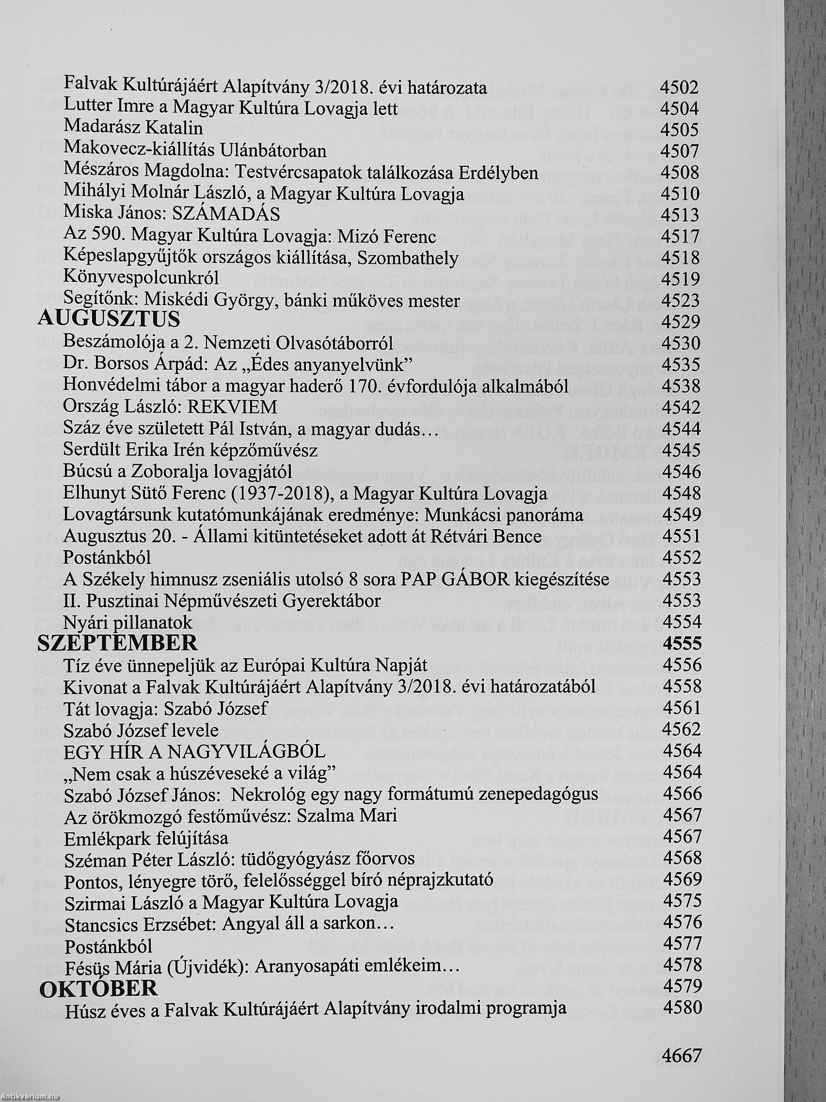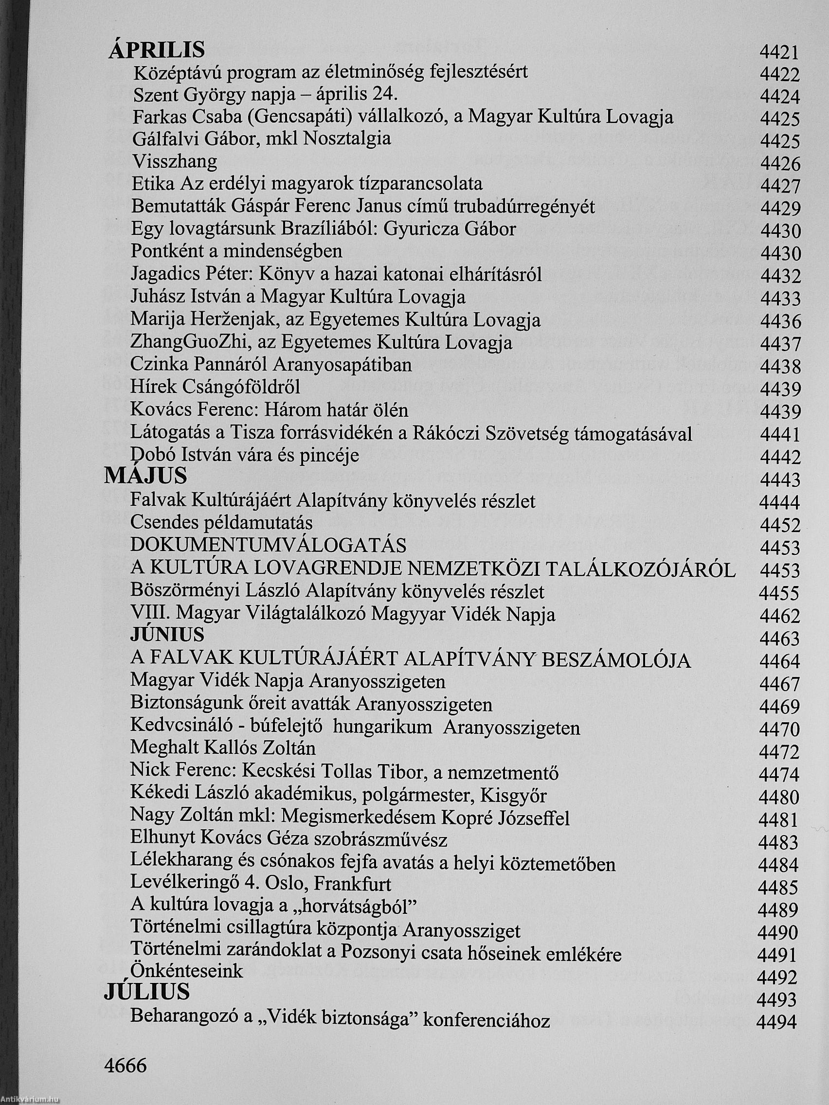 | Sorozatcím: | A Kultúra Lovagrendje Évkönyve |