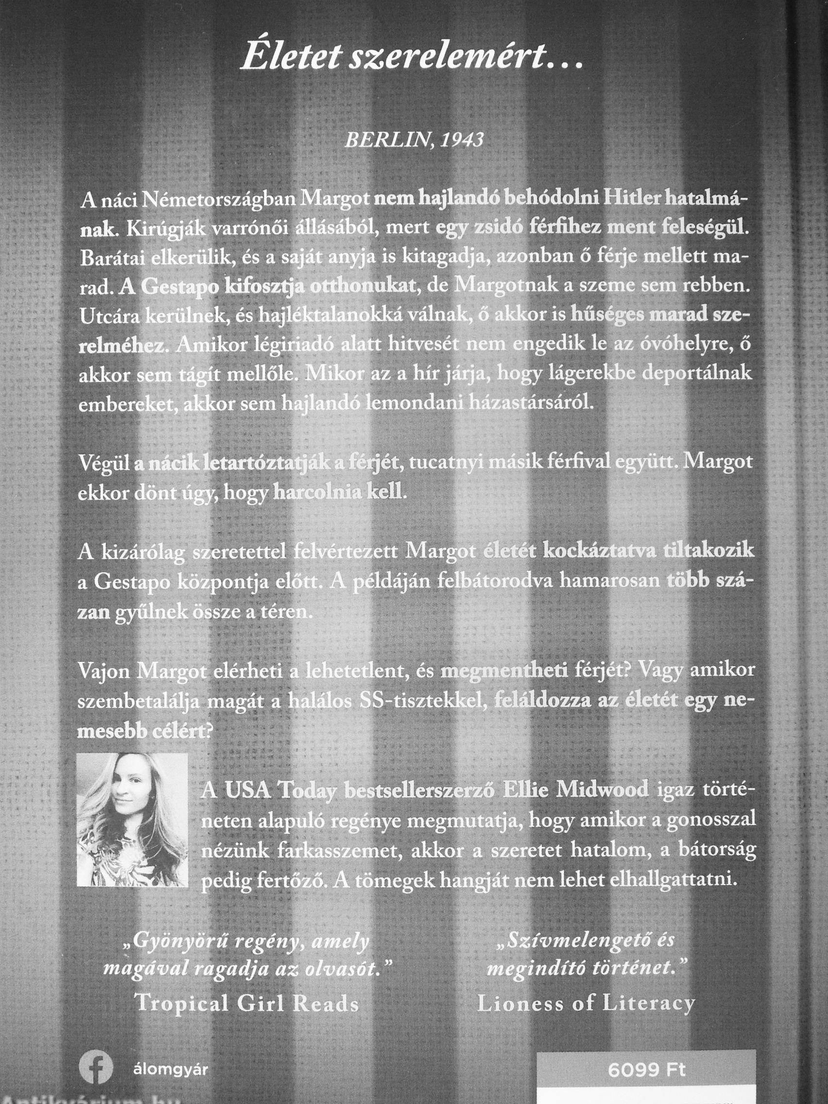 ^ USA Today béstsellerszerző EUie Midwöod igaz törté-neten alapuló regénye megmutatja, hogy amikor a gonosszal ? nézünk farkasszemet, akkor a szeretet hatalom, a bátorság pedig fertőző. A tömegek hangját riem lehet elhallgattatni.