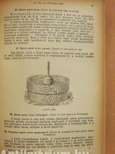 Híres magyar és franczia szakács-művészek nyomán/A polgári és finom konyha legkipróbáltabb vényeivel/A főzés művészetének mester nélküli elsajátítására/A levesek, előtkek, mártások, mindenféle húsnemek, zöldségek, saláták, főtt és sült tészták, torták, czukorsütemények, czukorkák, italok stb. ízletes és pontos készítési módjával/A tálalás, terítés és fölszeldelés magyarázatával/Étlapok, a konyha s a főzési anyagok teljes ismertetése