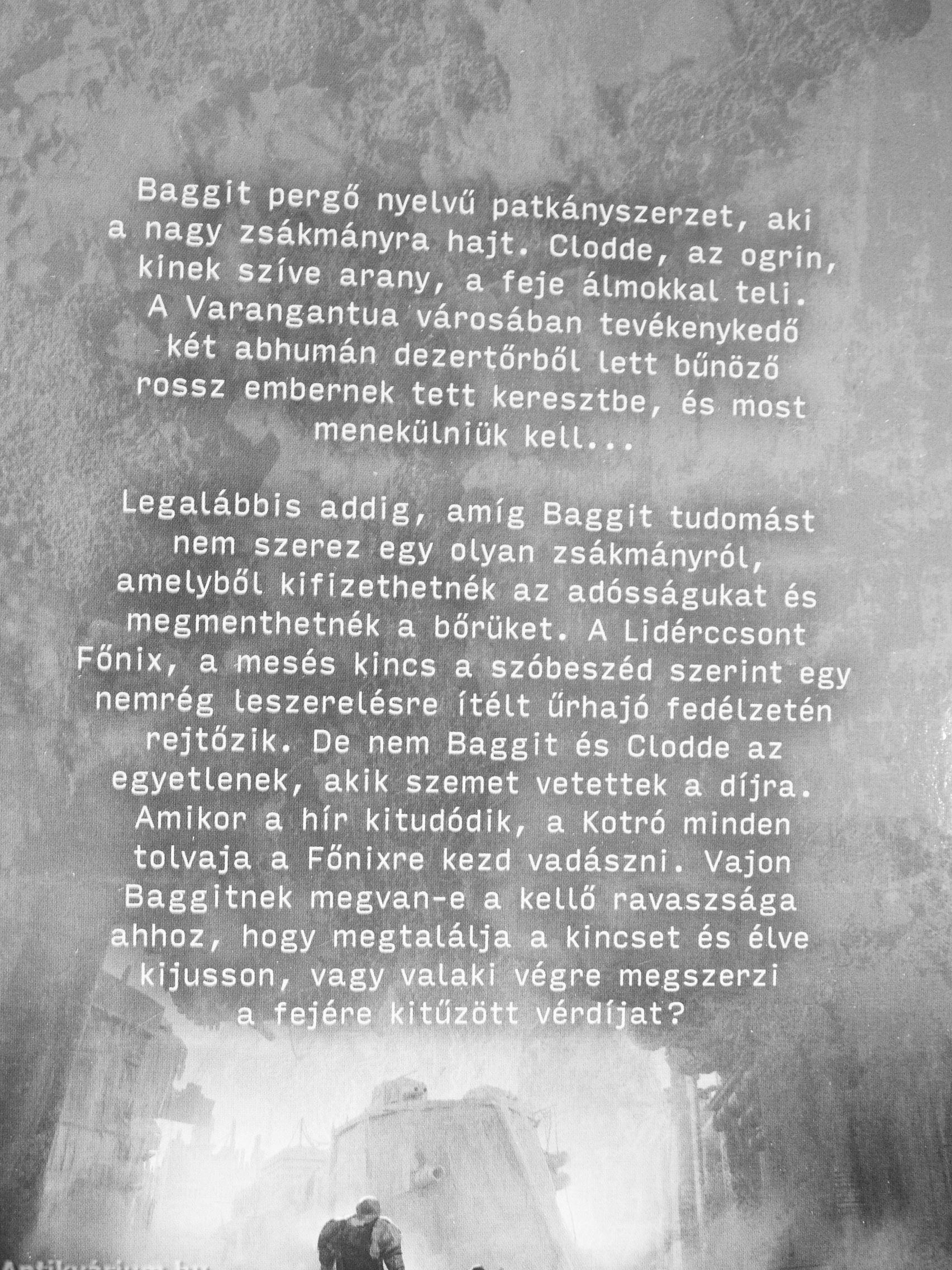 rejtőzilíi De nem Baggit és Clodde az . egyetlenel<, akik szemet vetettek a díjra. Amikor a hír kitudódik, a Kotró minden tolvaja a Főnixre kezd vadászni. Vajon Baggitnek megvan-e a kellő ravaszsága alihoz, hogy megtalálja a kincset és élve kijusson, vagy valaki végre megszerzi a fejére kitűzött vérdíjat?