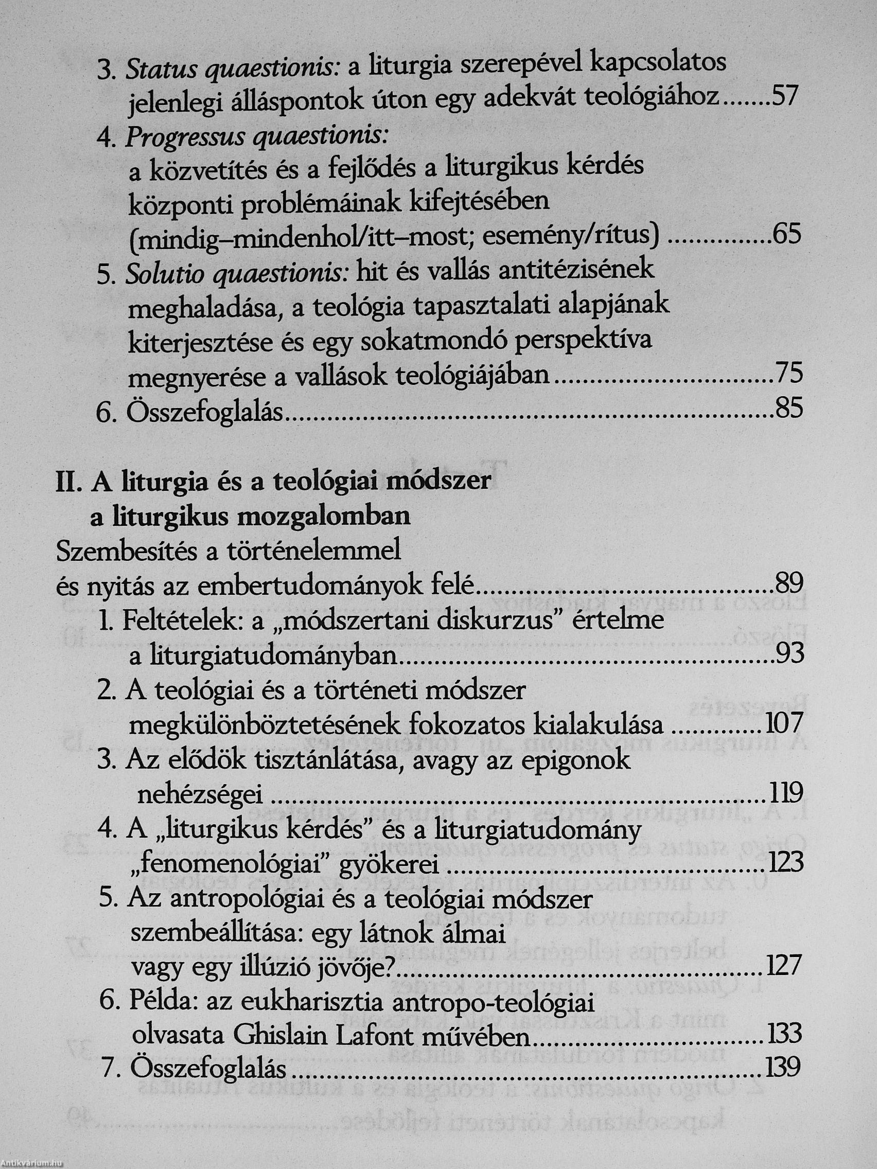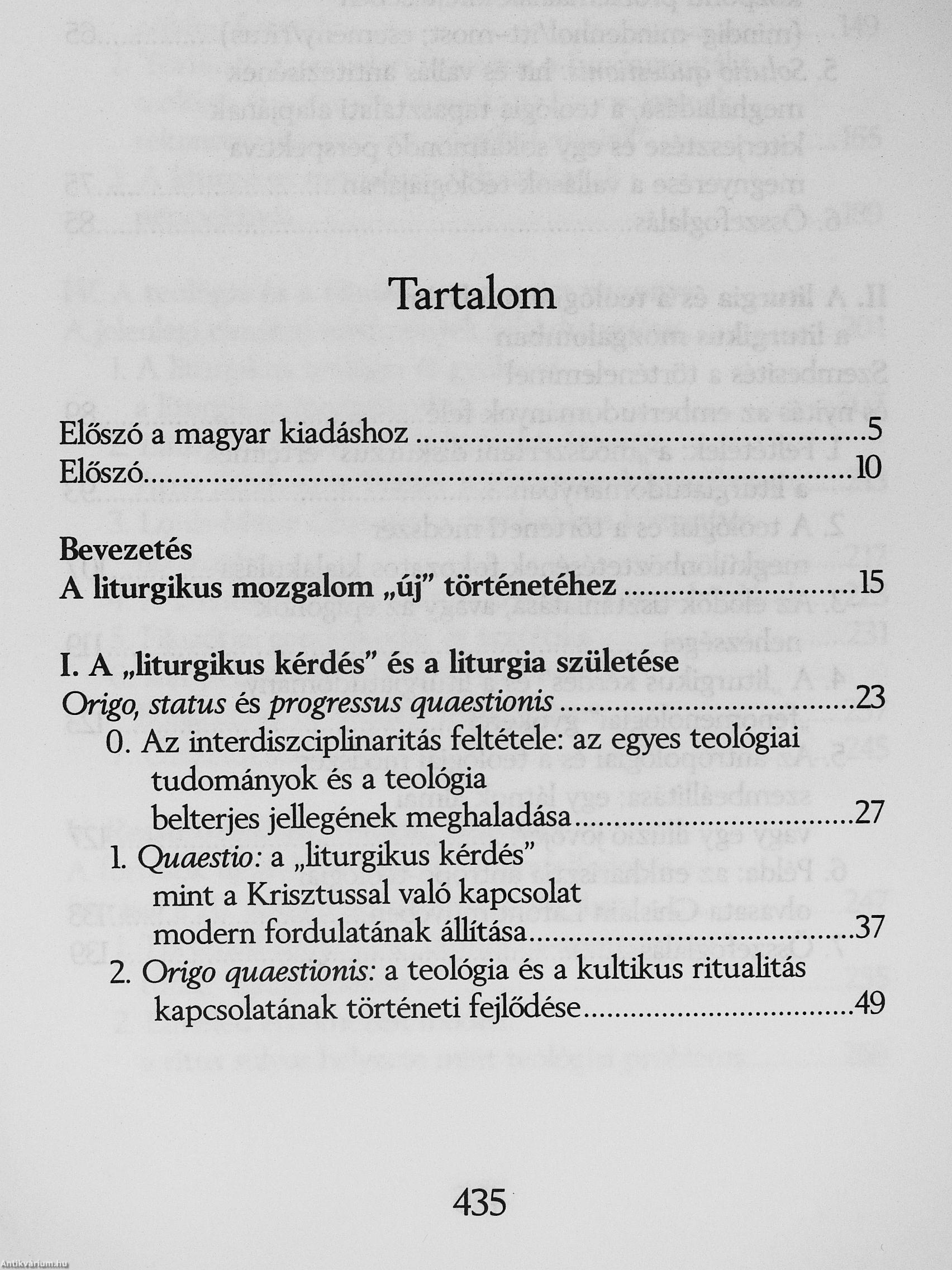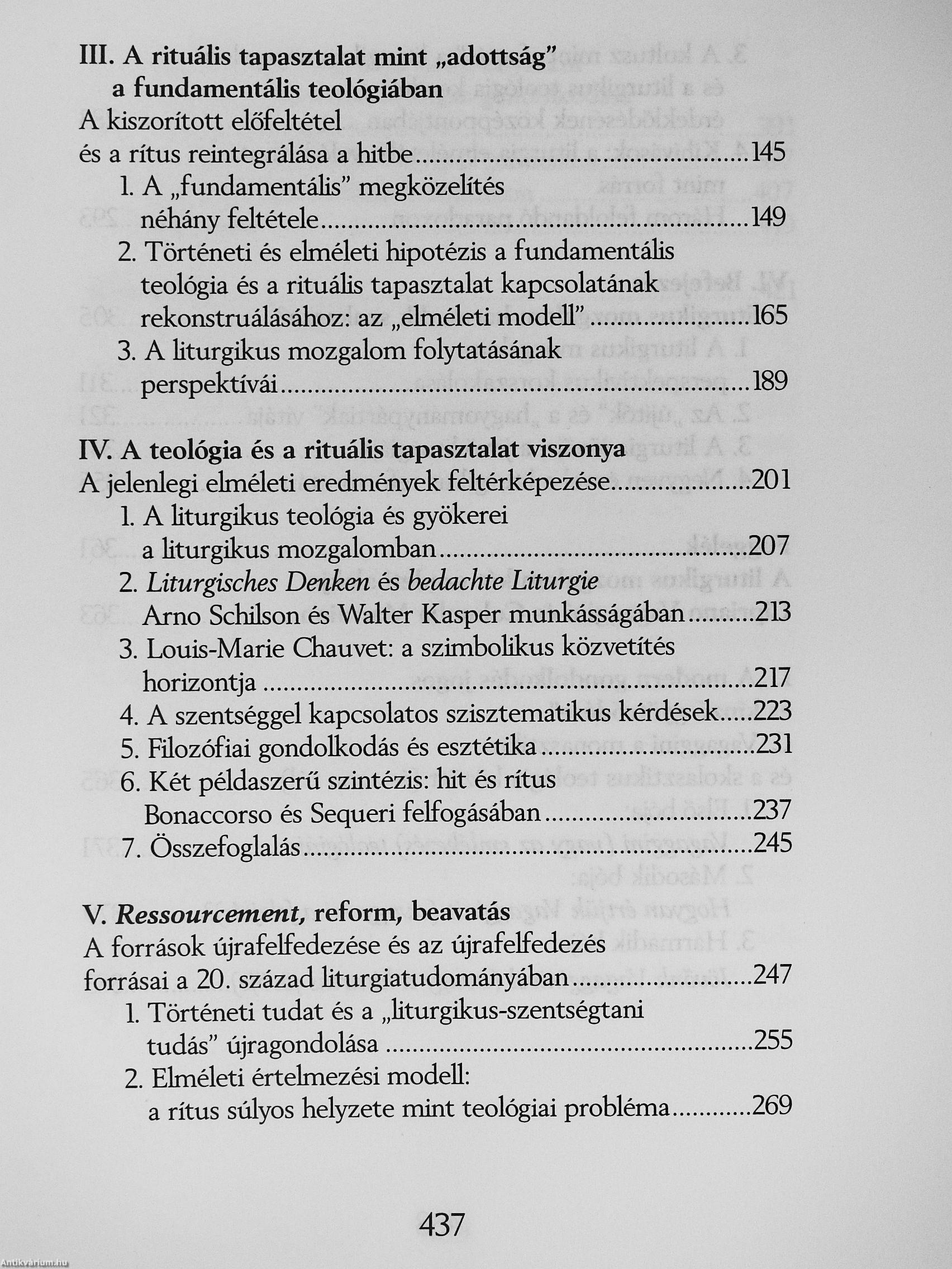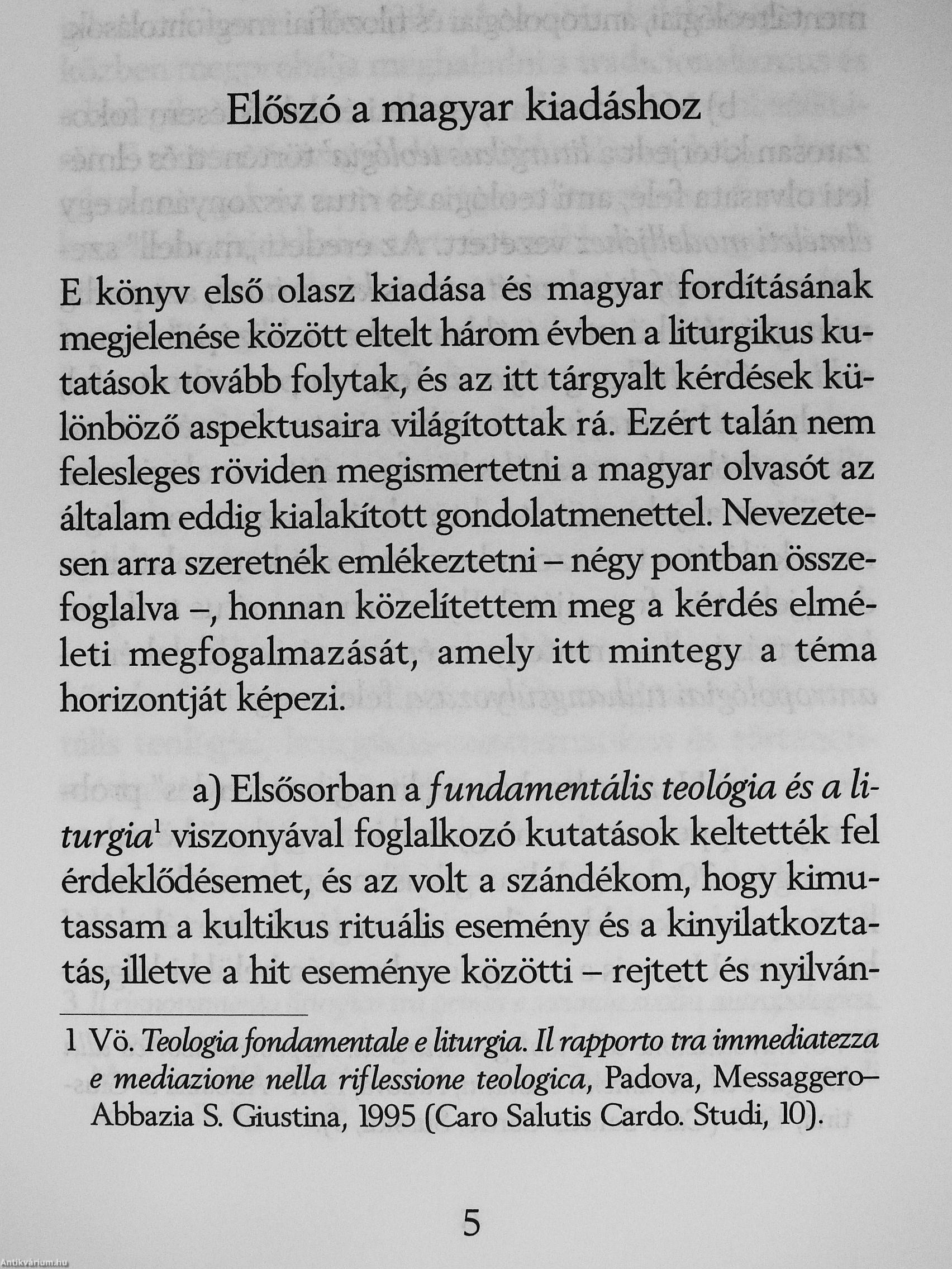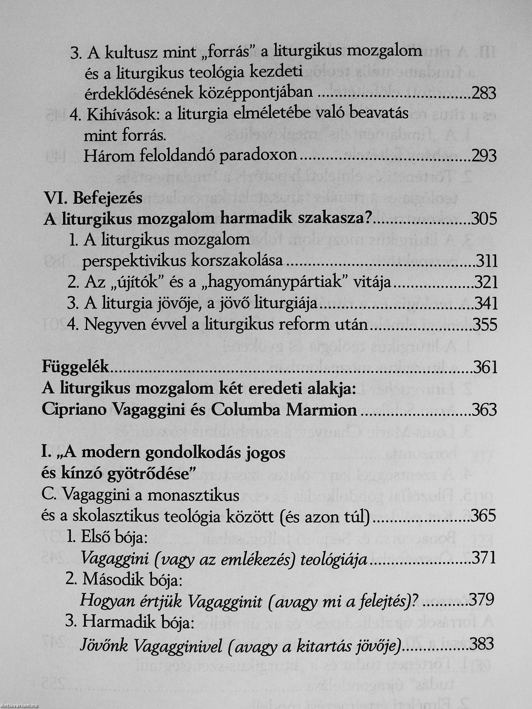 A rítussal szembeni ellenállás minden formája - amiképp a hozzá fűzött vak remény is - nem más, mint a századunkban kialakult, teljesen új helyzet tükre: az általános gyökérvesztés, a végeláthatatlan hagyományok megszakadása és csaknem mindenfajta rítus hanyatlása. A rítus válságának láttán a teológia azt gondolta, hogy a múlttal szembeni önigazolásképpen rövid úton keres megoldást: a rítus válságára úgy kívánt reagálni, hogy nem törődött vele, és mondta a maga igazságát a rítustól függetlenül, vagy egyenesen annak ellenében. így tudta (vagy akarta) elkerülni a rítussal való számvetést, mintha csupán egy immár (kétségtelenül) letűnt világ öröksége voba, és ezzel saját identitását a rítusoktól megszabadított kereszténységre cserélte. [ ]