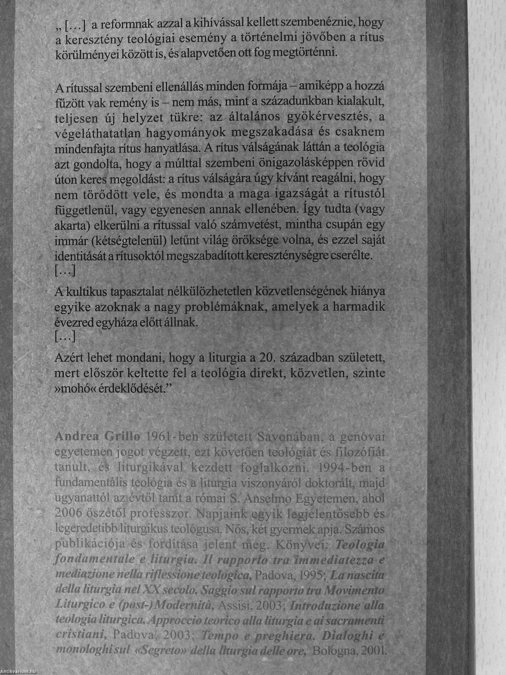 Andrea Grillo műveinek az Antikvarium.hu-n kapható vagy előjegyezhető listáját itt tekintheti meg: Andrea Grillo könyvek, művek