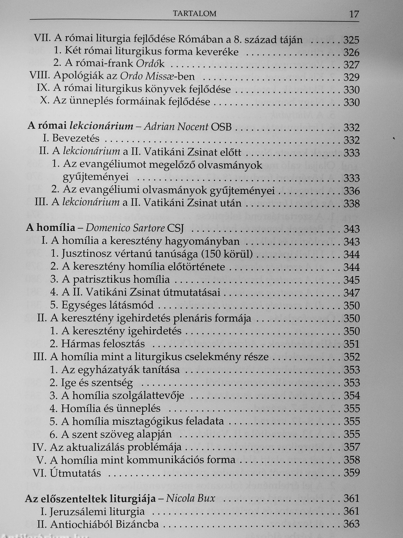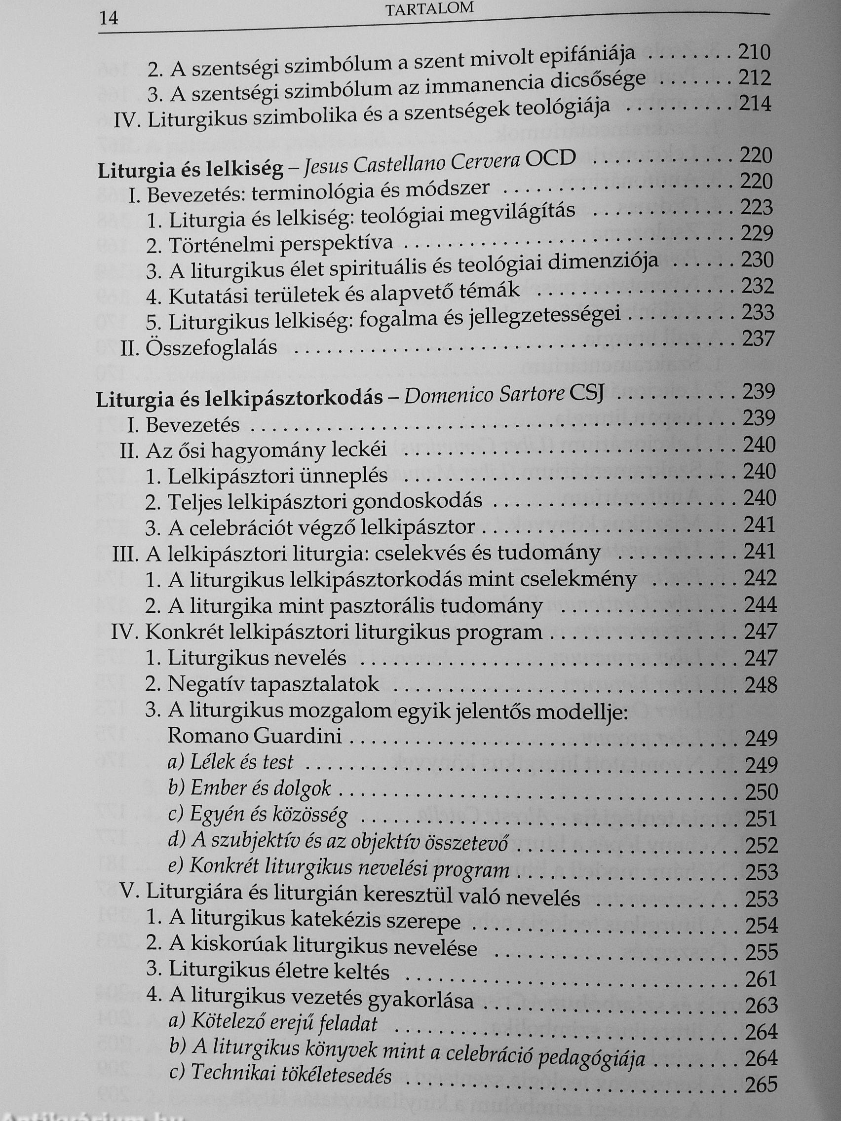 Magyar nyelvterületünk nem bővelkedik teológiai intézetekben, fakultásokban, így a magyar változat esetében el kellett tekinteni a teljes terjedelem közreadásától. Jelen egykötetes válogatás betekintést nyújt a római műhely munkájába, és egyaránt segíti a liturgia tanárainak, művelőinek és a liturgiával ismerkedőknek a munkáját. Örömmel ajánlom tehát az érdeklődőknek ezt a kötetet, hogy az „opus Dei", az Istennek szentelt szent cselekmény tudatos művelőivé váljanak.