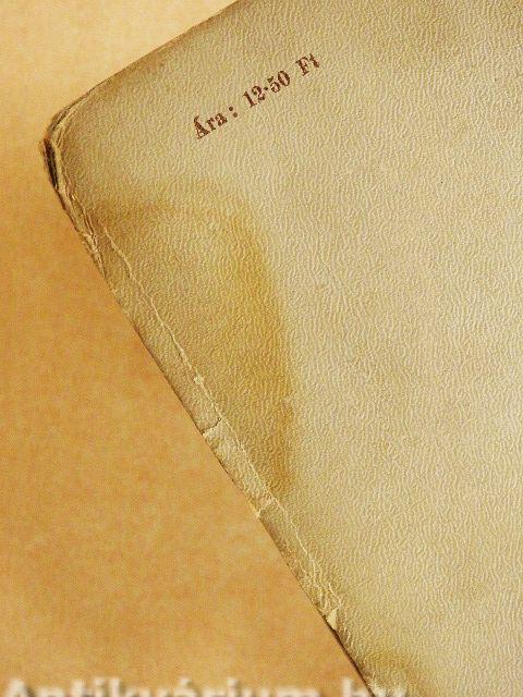 A borító foltos, kopott, élei sérültek. A gerinc megtört.