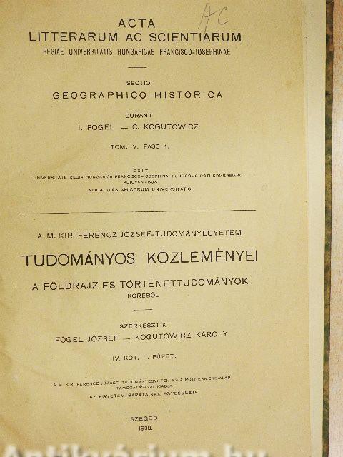 A M. Kir. Ferencz József-Tudományegyetem Tudományos Közleményei - A földrajz és történettudományok köréből IV/1.