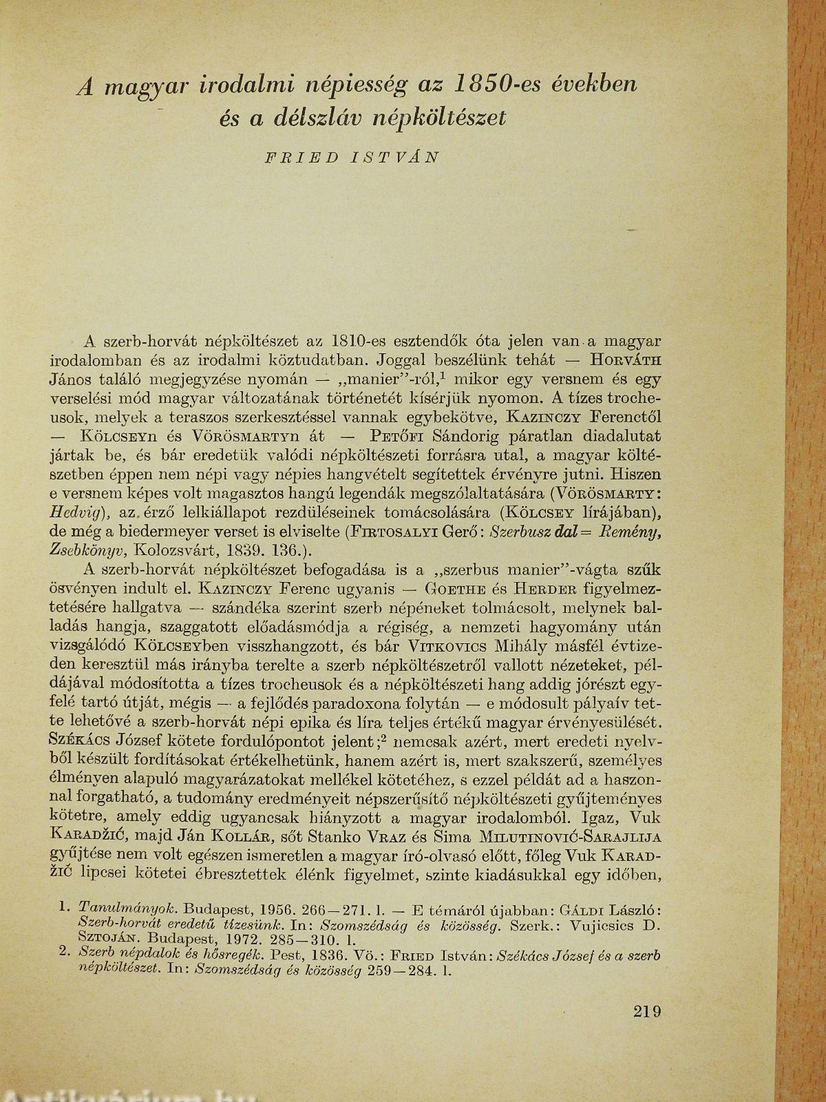 "A szerb-horvát népköltészet az 1810-es esztendők óta jelen van a magyar irodalomban és az irodalmi köztudatban. Joggal beszélünk tehát - Horváth János találó megjegyzése nyomán -... Tovább
