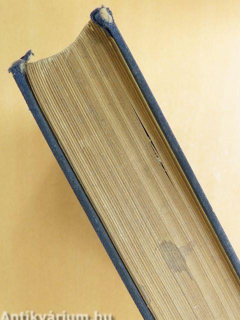 A borító és néhány lap nedvességtől foltos és hullámos. A gerinc kopott.