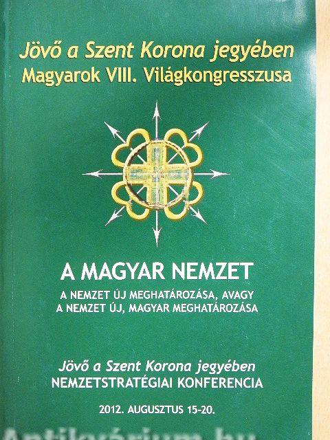 A Magyarok VIII. Világkongresszusa keretében elhangzott előadásokat két kötetben hozzuk nyilvánosságra. Az első kötetet teljes egészében a nemzetstratégiai konferenciának, valamint a nemzetstratégiai jellegű Nyitó- és Záró-konferenciának szenteljük. A kötet a Magyarok Világszövetsége elnökének a világkongresszust előkészítő Alapvetés című írásával kezdődik, majd következik a világkongresszus Zárónyilatkozata, és ezt követően a Magyarok VIII. Világkongresszusának legmaradandóbb alkotása, a magyar nemzet új meghatározása, avagy a nemzet új, magyar meghatározása, magyarul és angolul. A kötet második része a Nyitó-konferencia három legjelentősebb előadását tartalmazza, Kocsis István a Szent Korona misztériumát és tanát egybefoglaló 7 részes előadását, Drábik Jánosnak a magyarság és a zsidóság viszonyát taglaló dolgozata, majd Orosz Mihály Zoltán értekezése a magyar-cigány viszonyról. A kötet harmadik része a háromnapos nemzetstratégiai konferencián elhangzott, és írásban is 2012. szeptember 20-ig benyújtott dolgozatokat tartalmazza.