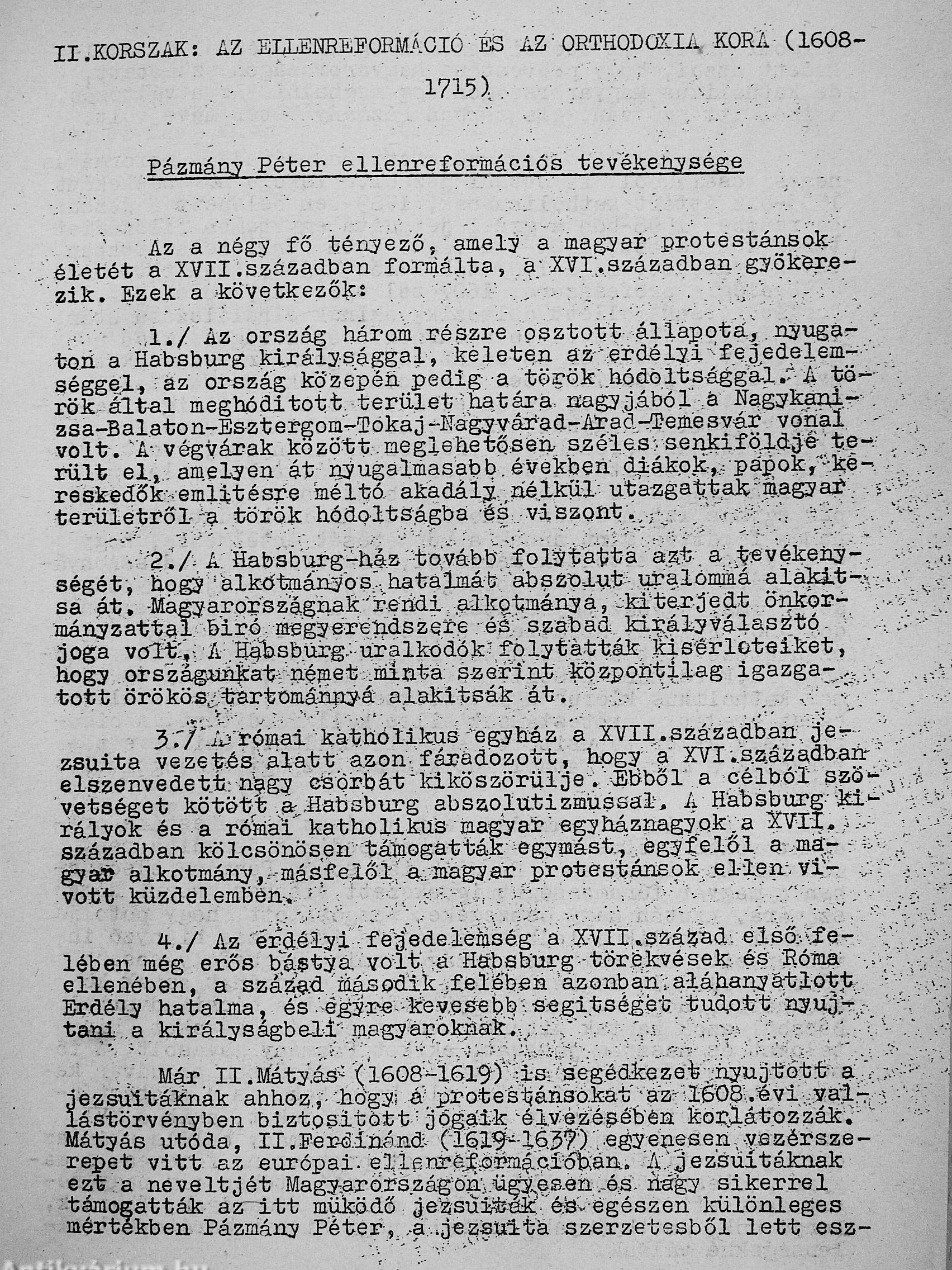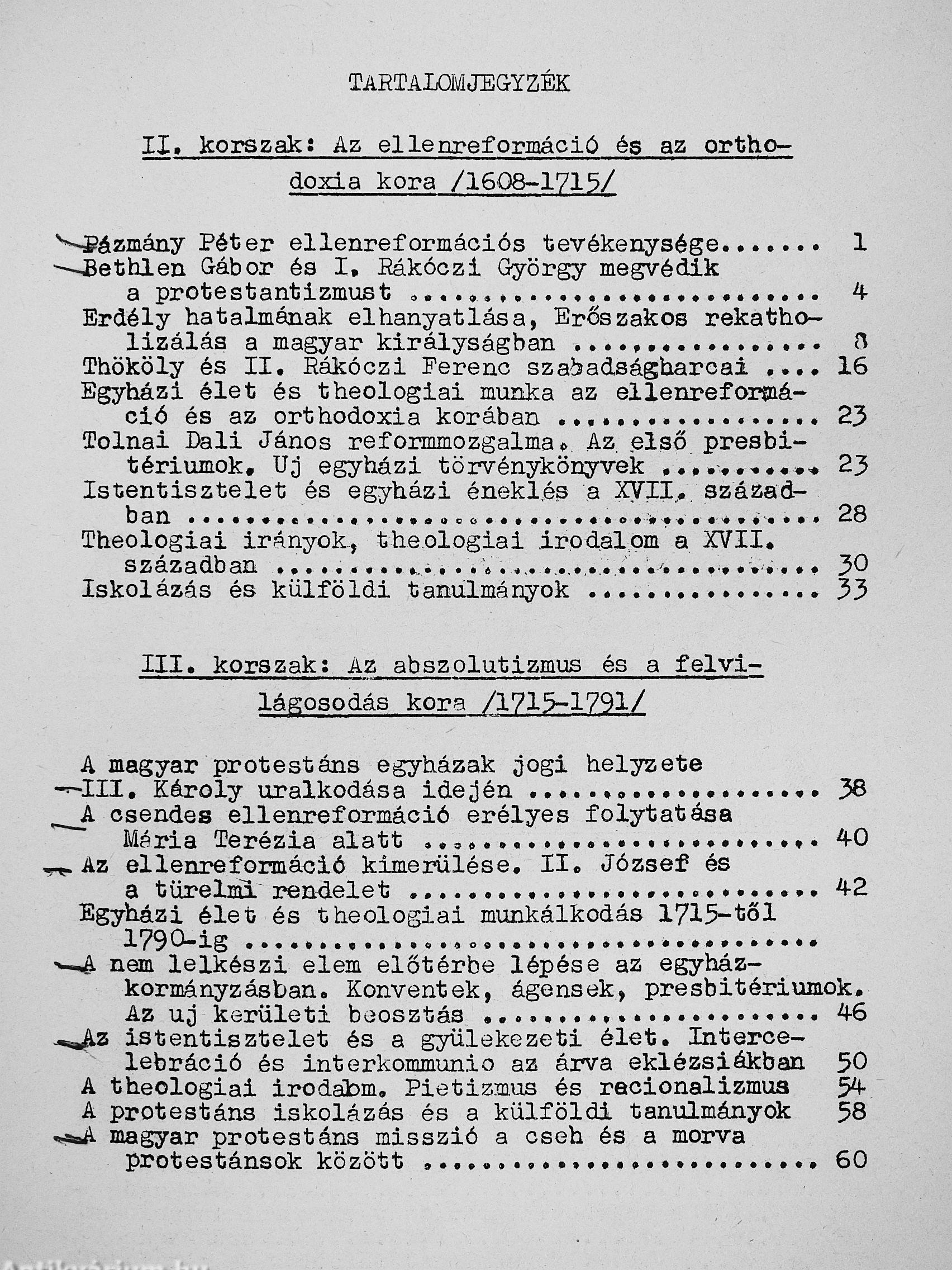 II. korszak: Az ellenreformáció és az orthodoxia kora 1608-1715/III. korszak: Az abszolutizmus és a felvilágosodás kora 1715-1791