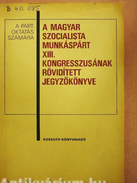 | A Magyar Szocialista Munkáspárt XIII. kongresszusának határozata a párt munkájáról és a további feladatokról | 185 |