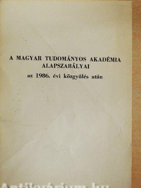 "A Magyar Tudományos Akadémia (a továbbiakban Akadémia) a Magyar Népköztársaság legfőbb tudományos szerve. Tagjai munkásságával és intézményeiben folyó kutatásokkal műveli a tudományt....