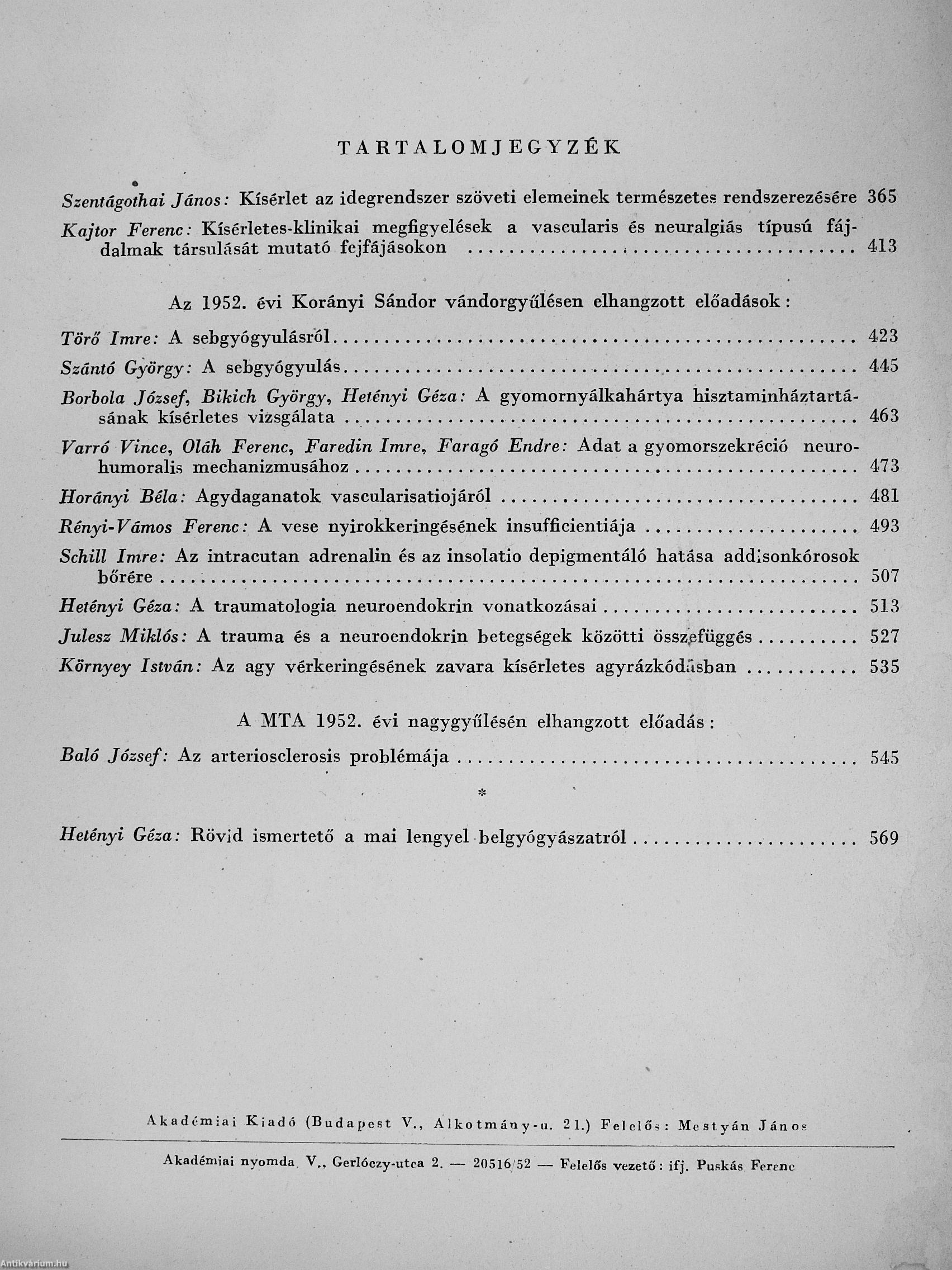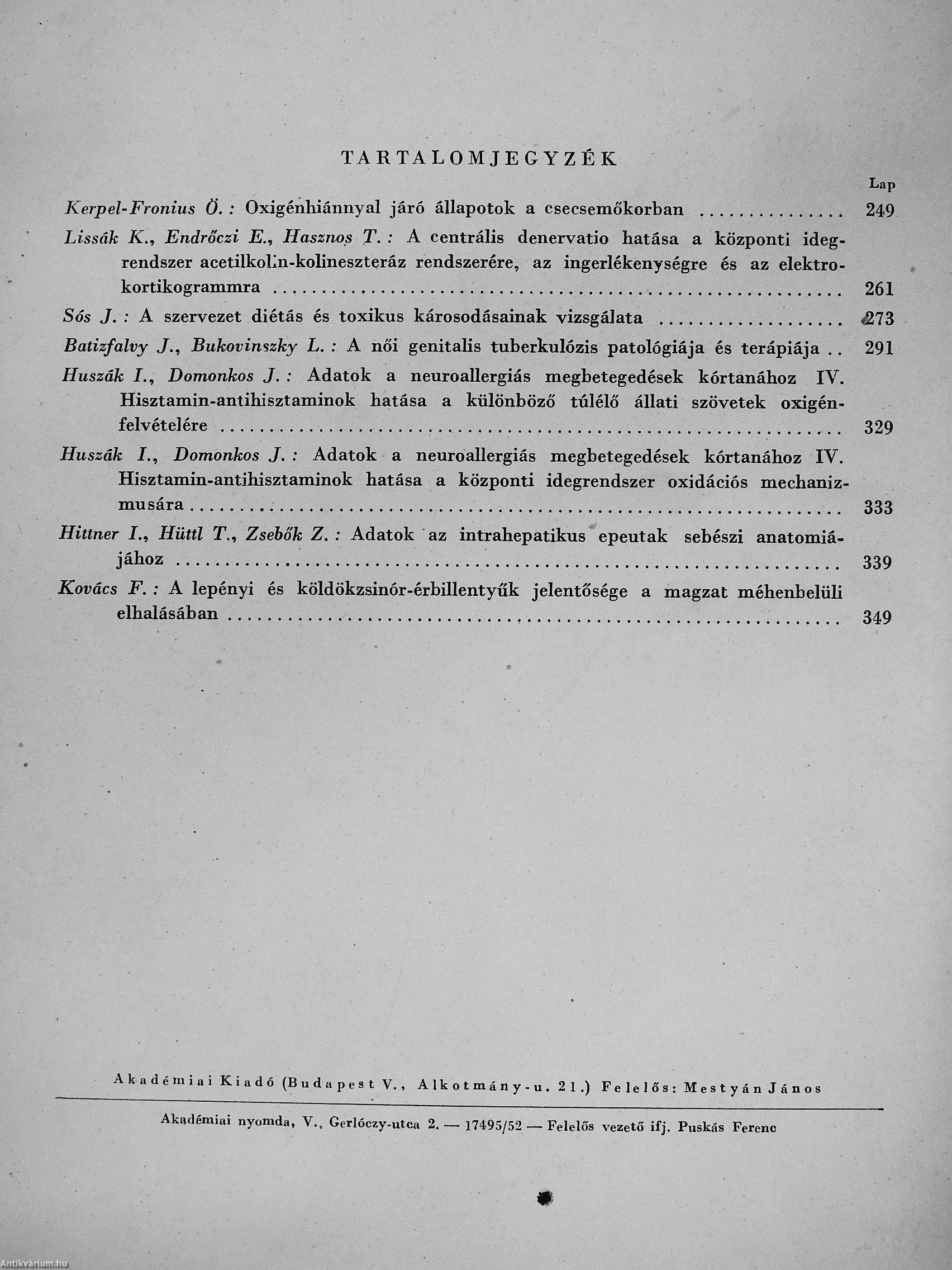 | Sorozatcím: | A Magyar Tudományos Akadémia Orvosi Tudományok Osztályának közleményei |