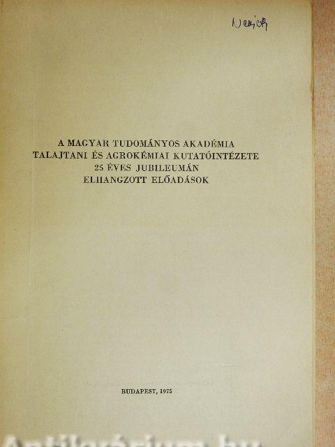 A Magyar Tudományos Akadémia Talajtani és Agrokémiai Kutatóintézete 25 éves jubileumán elhangzott előadások