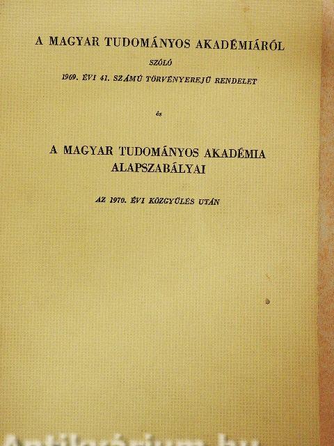 A Magyar Tudományos Akadémiáról szóló 1969. évi 41. számú törvényerejű rendelet és a Magyar Tudományos Akadémia alapszabályai az 1970. évi közgyűlés után